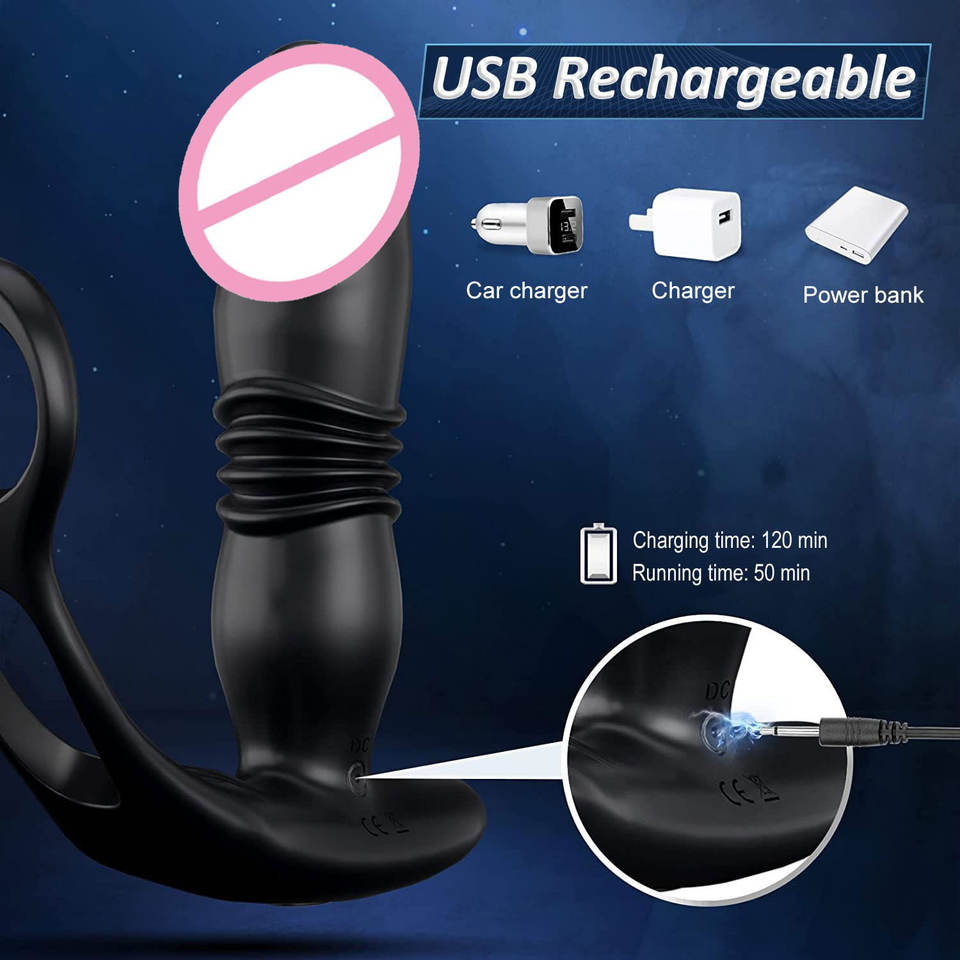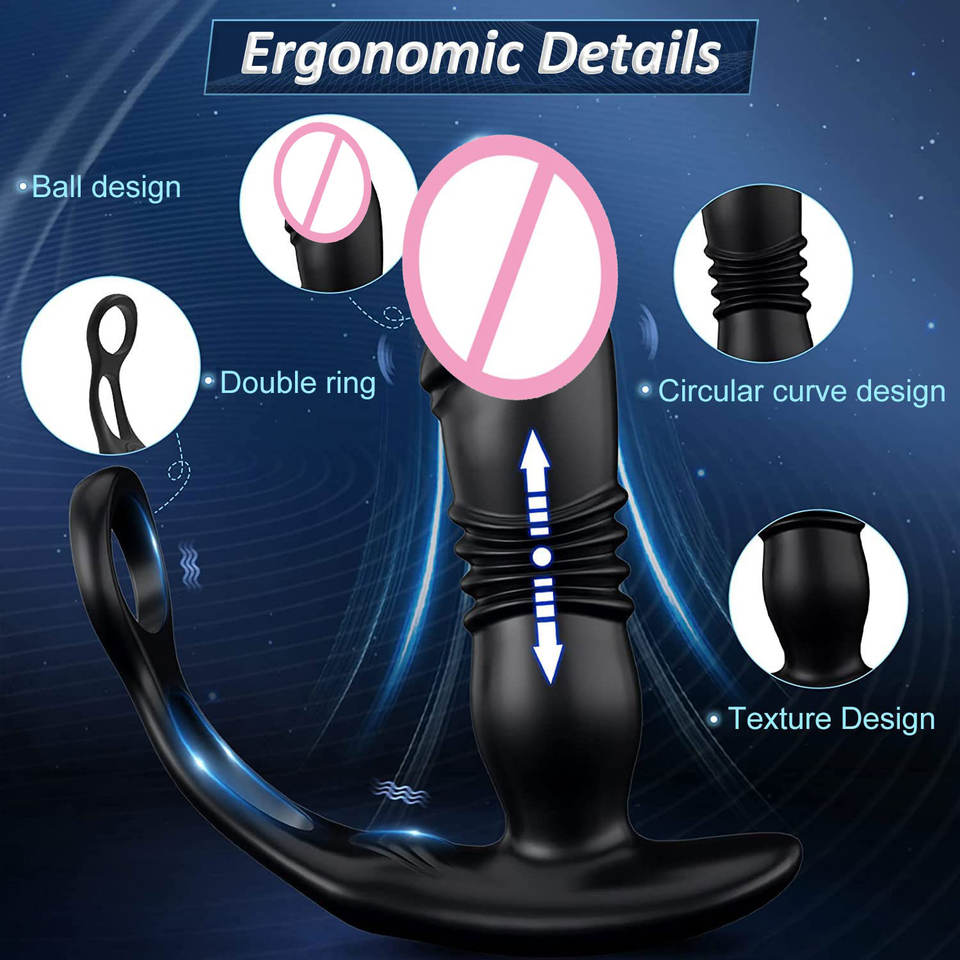 Thrusting Anal Vibrator, Male Prostate Massager, Butt Plug with Cock Ring, Anal Butt Plug, Eco-Friendly, real touch feeling, adult stimulationFeature