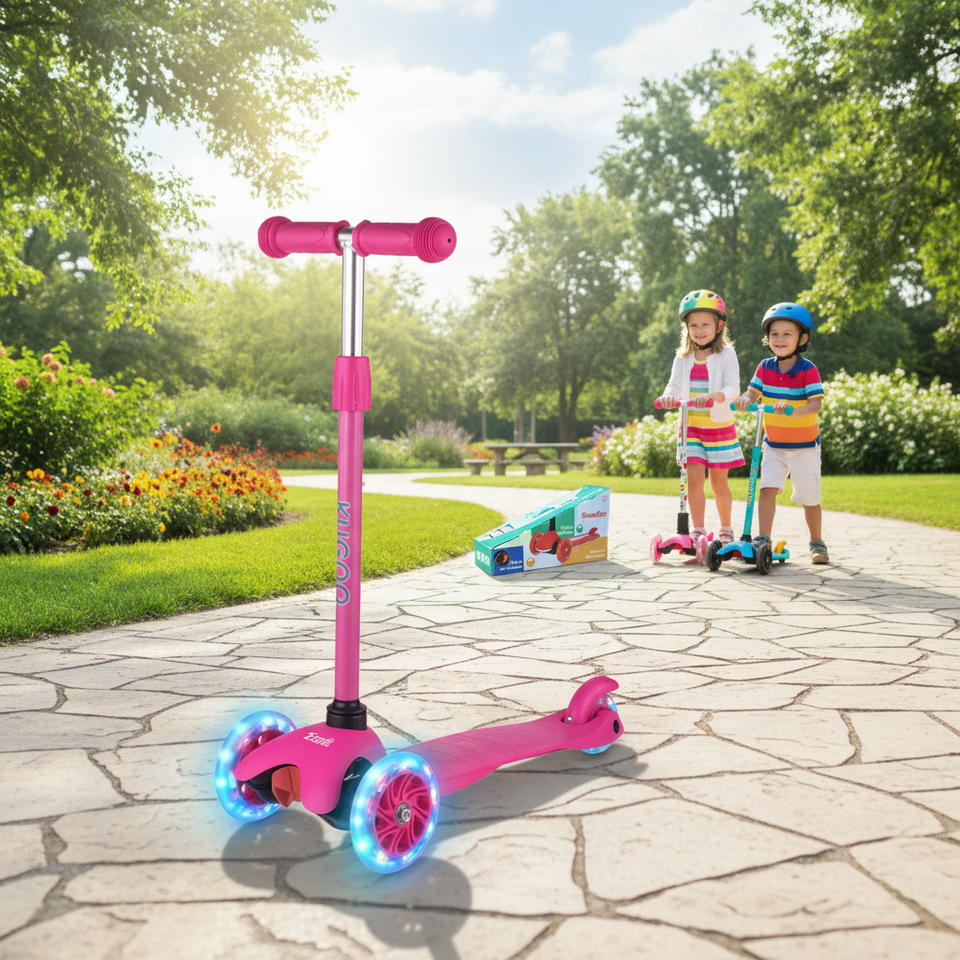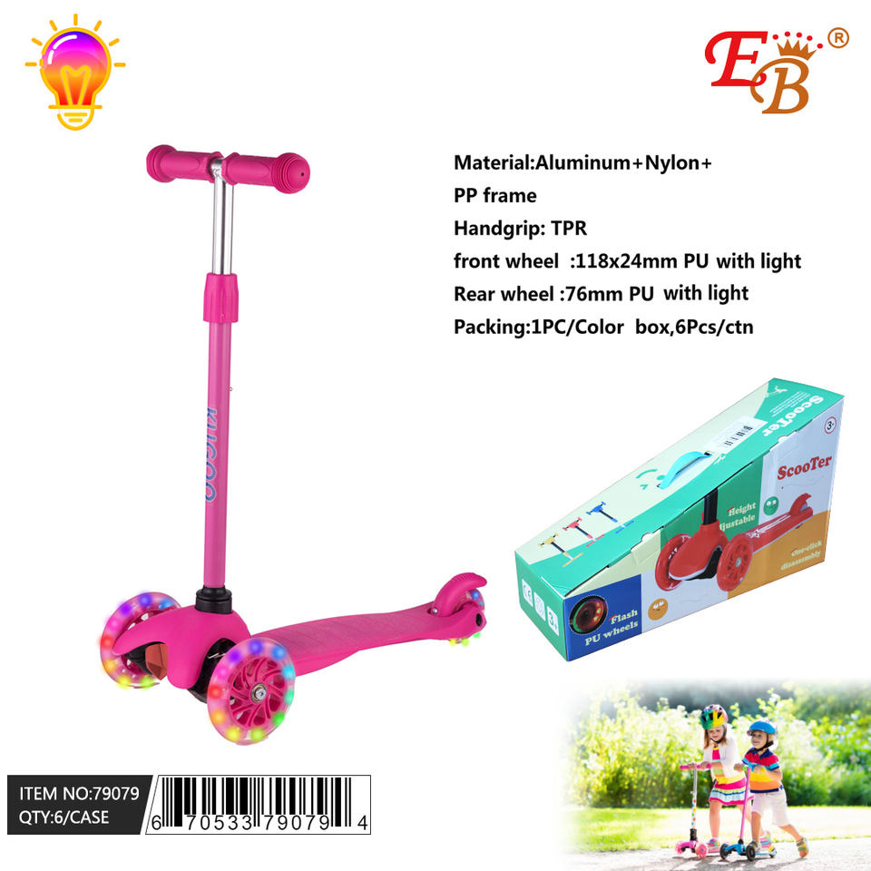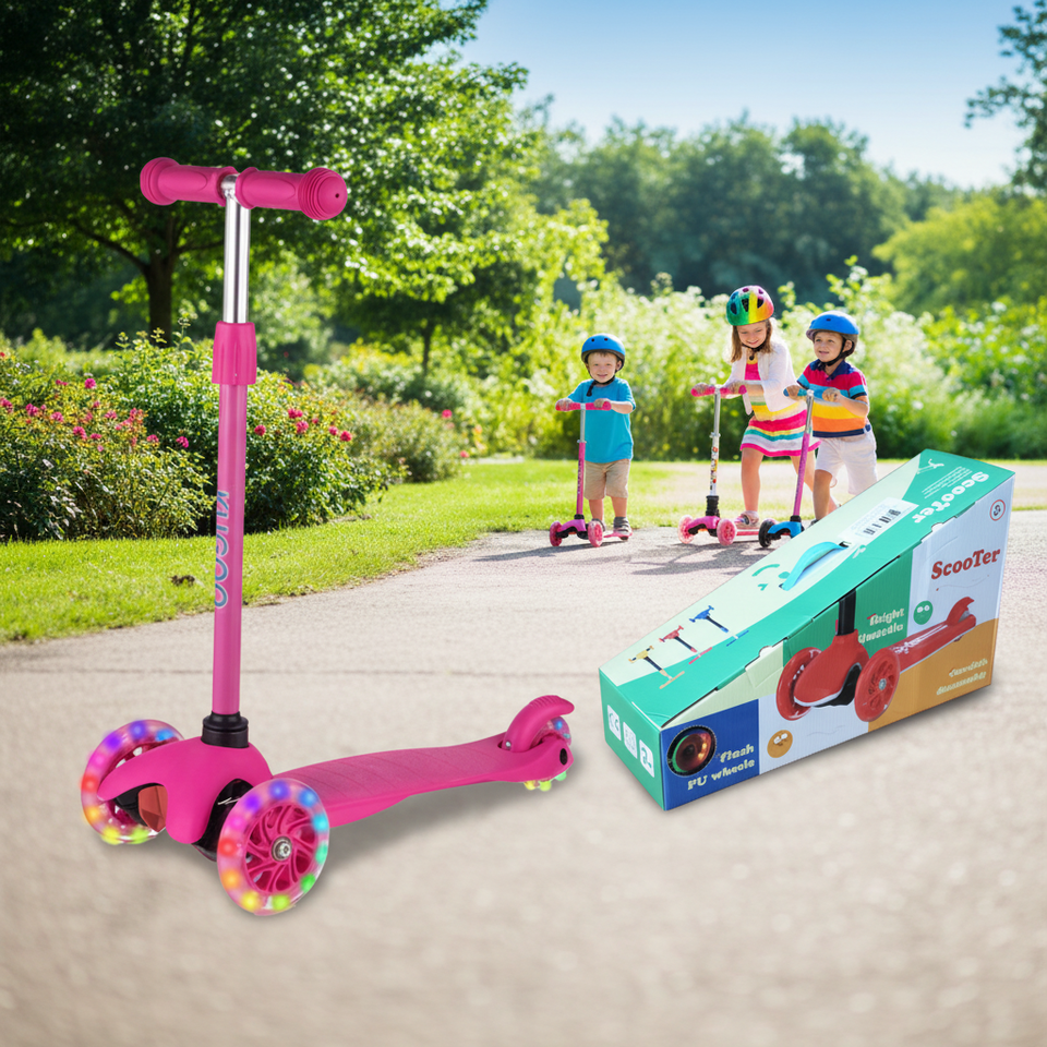 3-in-1 Pink Steel & Plastic 3-Wheel Scooter with Light Foldable Child Toy for Outdoor Use 6pcs/CS