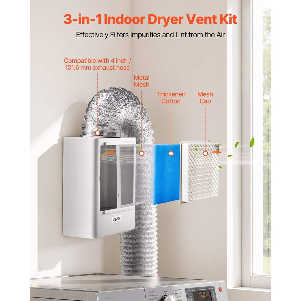 Kit di Ventilazione Interno 3-in-1 Premium in ABS con Porta di Scarico da 4 Pollici, Promemoria Intelligente di Surriscaldamento, Facile da Usare, con Filtro dell'Aria e Cappa di Scarico