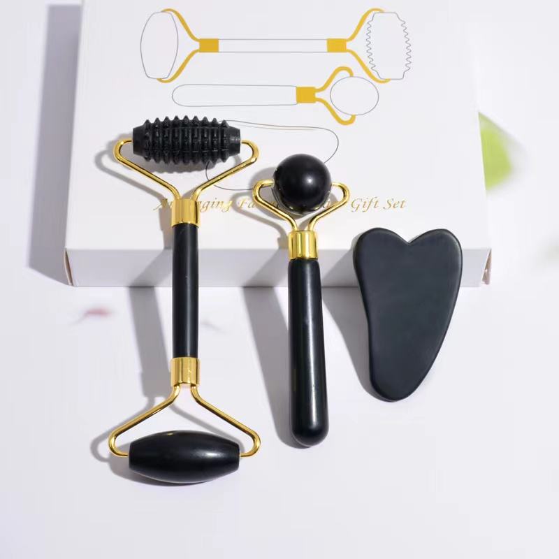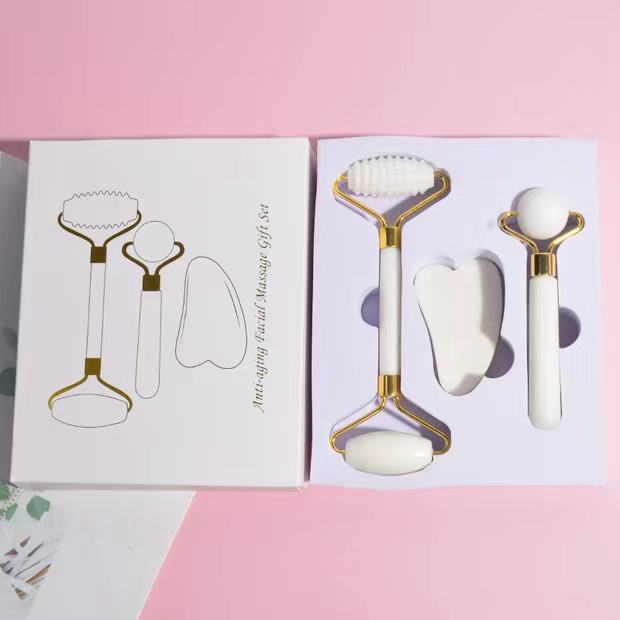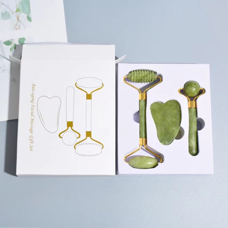 3 in 1 Set di alta qualità del viso massaggiatore di giada rullo Gua Sha pietra strumento a basso costo per massaggio viso Guasha Tool Rouleau De Jade
