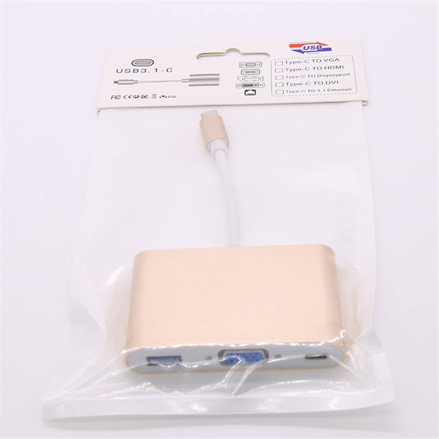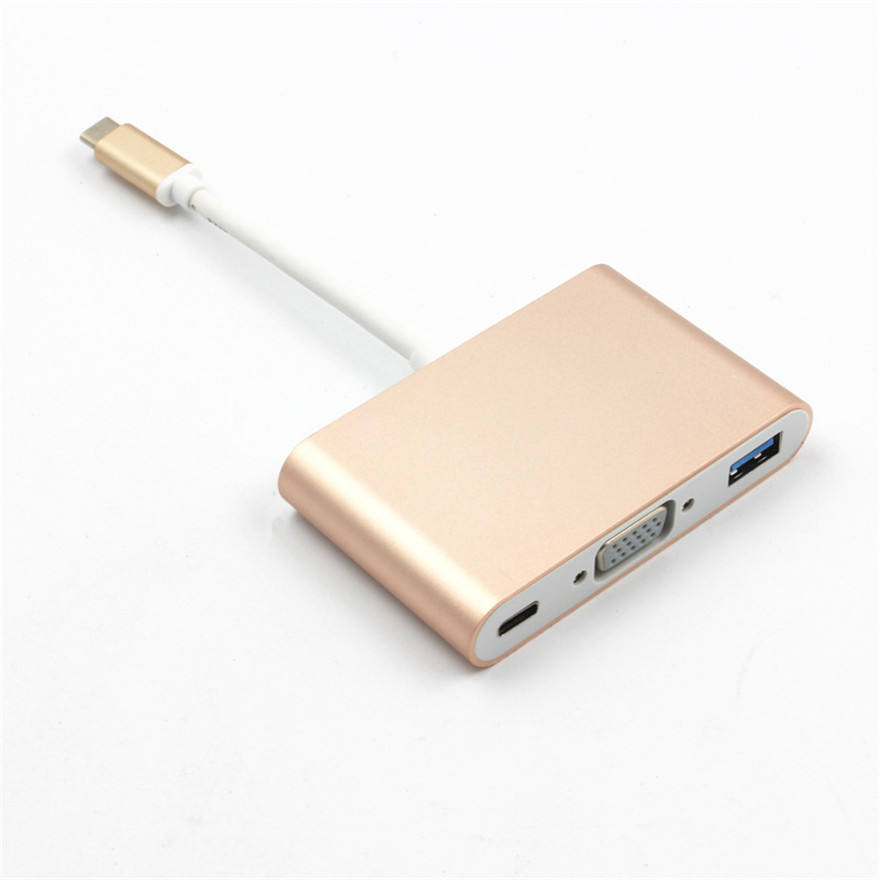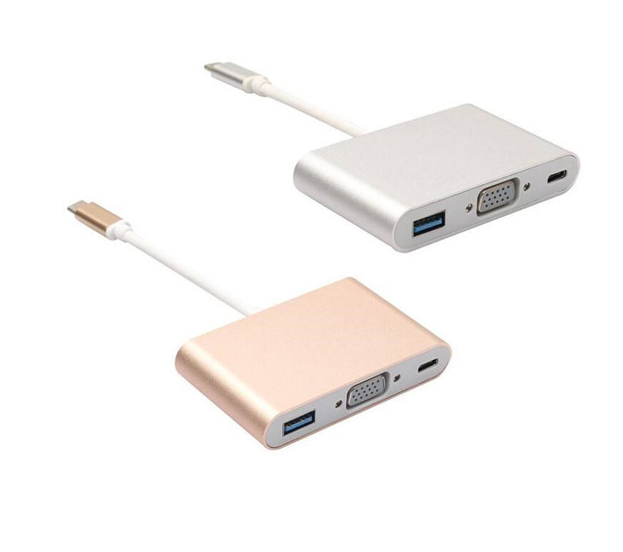 Hub USB-C 3 in 1 Tipo-C 3.1, Adattatore da USB-C Maschio a PD USB 3.0 VGA Tipo C Femmina per Ricarica, Compatibile con Macbook, Google Chromebook, Pixel S10