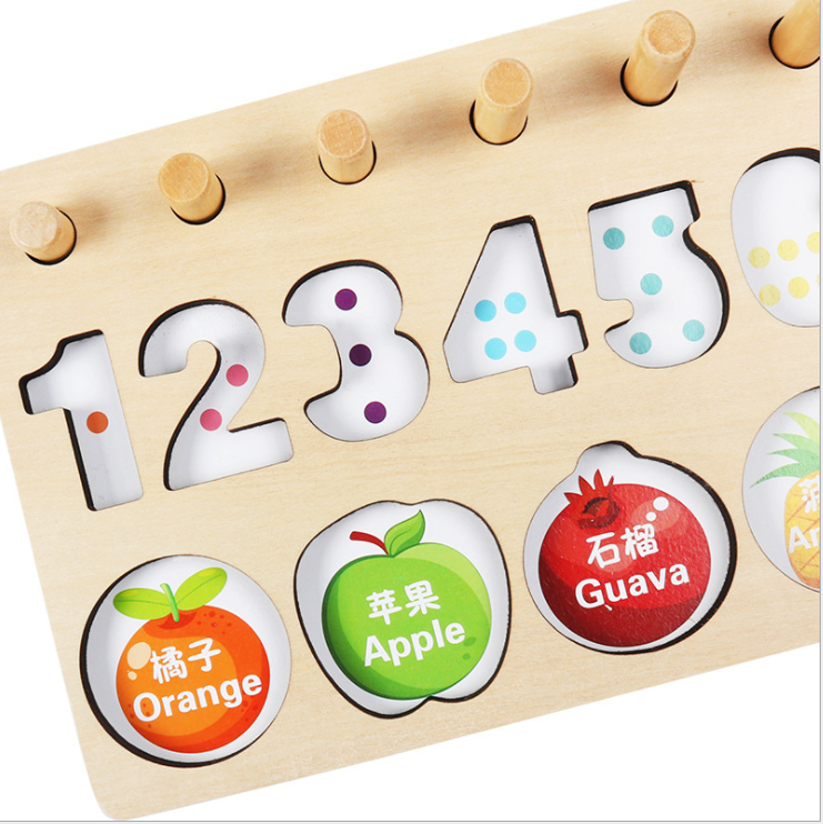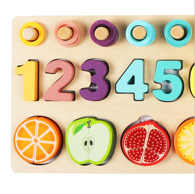 3 in One Kids Wood Montessori Children Wooden Counting Stick Calculation Math Early Learning Educational Fruit Cutting Toys
