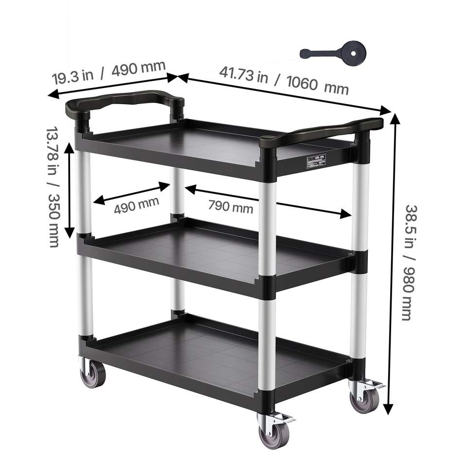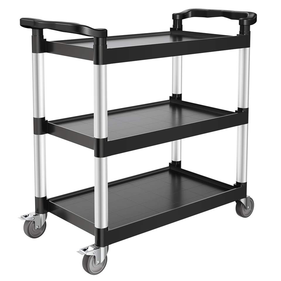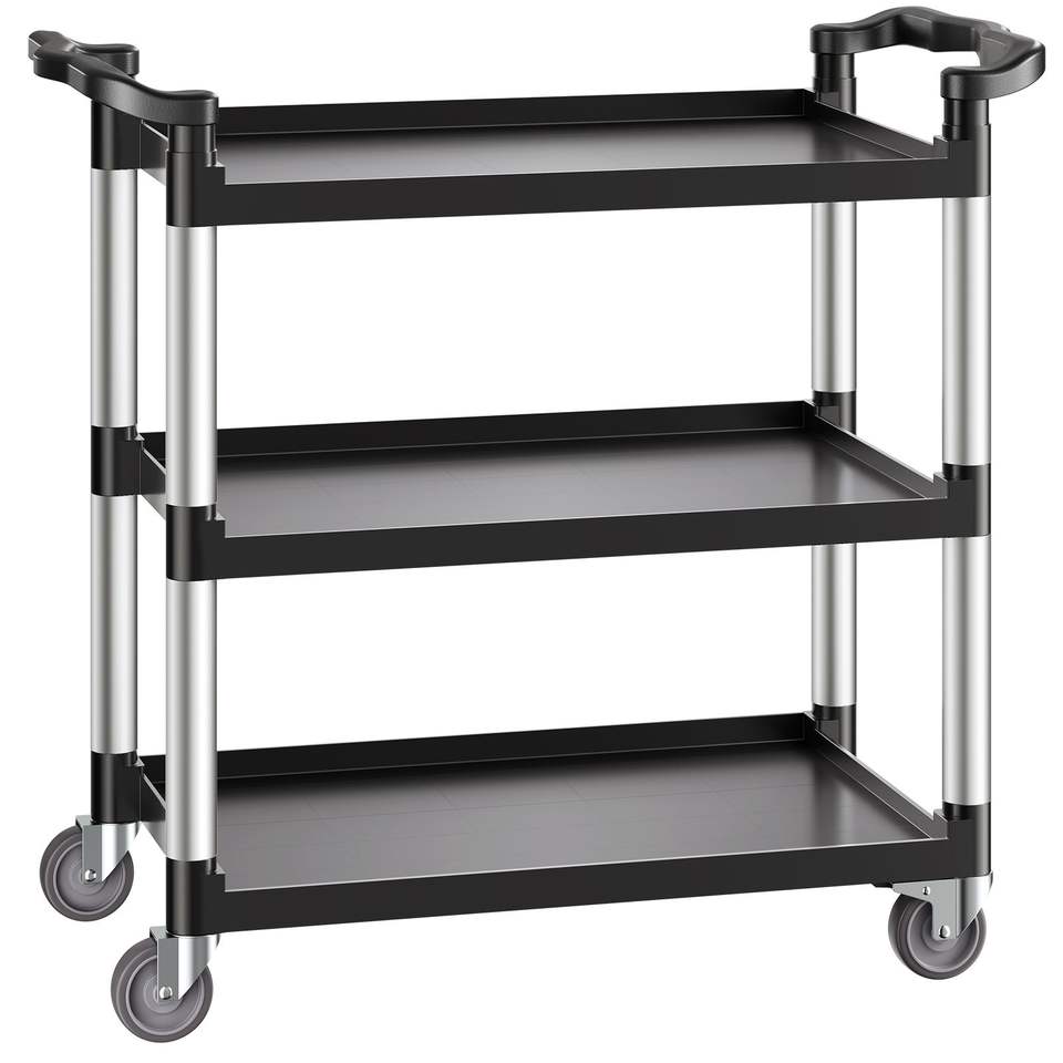 Carrello Utilitario in Plastica a 3 Ripiani con Capacità di Carico di 227 kg e Ruote Girevoli a 360 Gradi (2 Freni) 79,5 x 49 cm