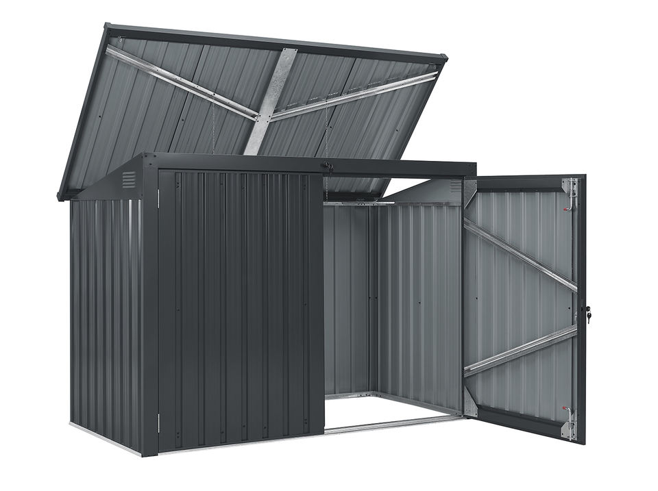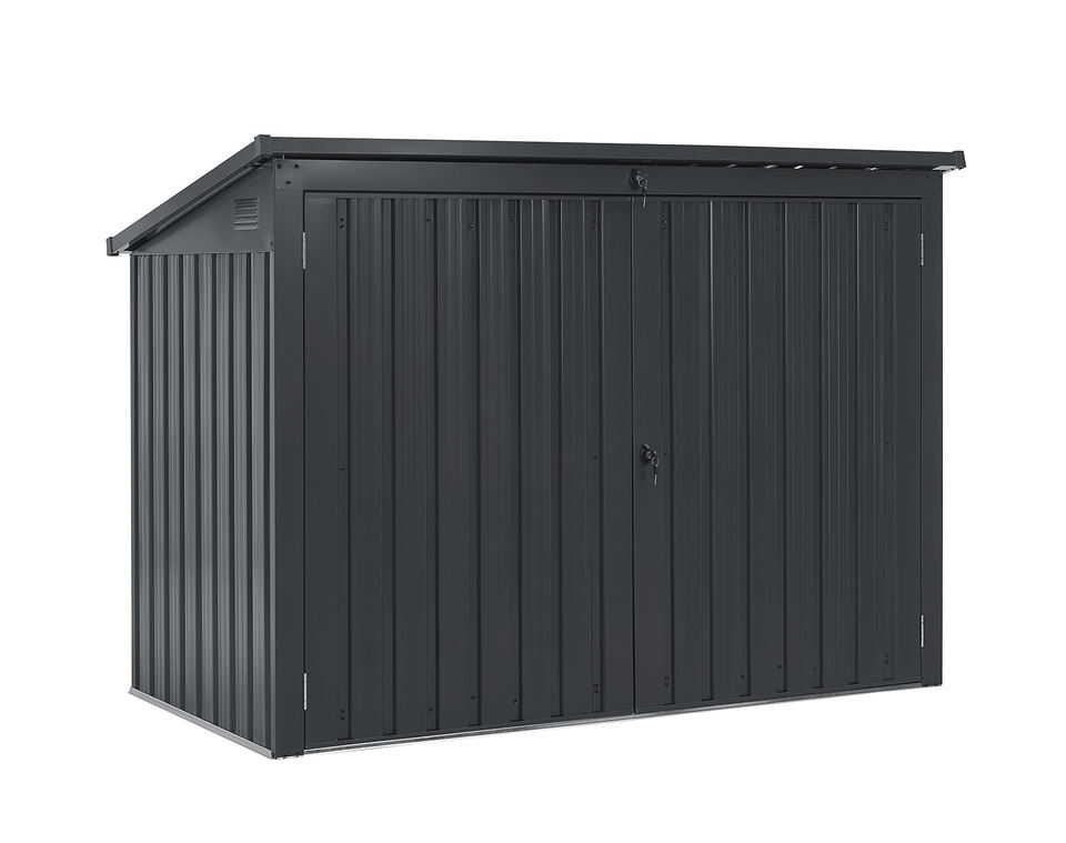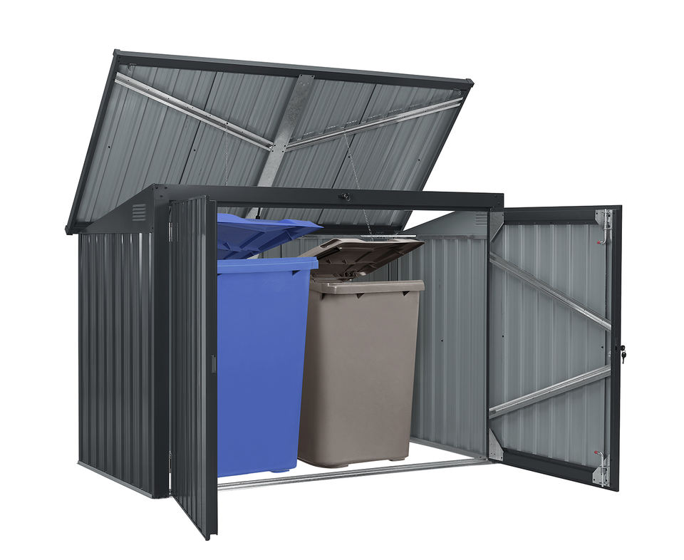 3'x7'ft in metallo mobile Design del tetto a spiovente e chiusura a chiave giardino esterno intelligente contenitore della spazzatura negozio all'aperto