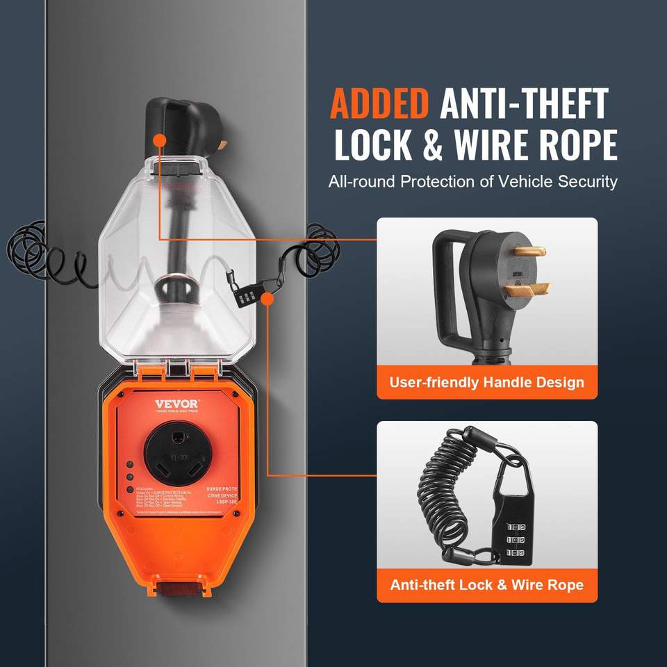 30 Amp 4100 Joules RV Surge Protector Waterproof Cover Anti-Theft Lock ETL Certified Power Guard Circuit Analyzer for RV Camper