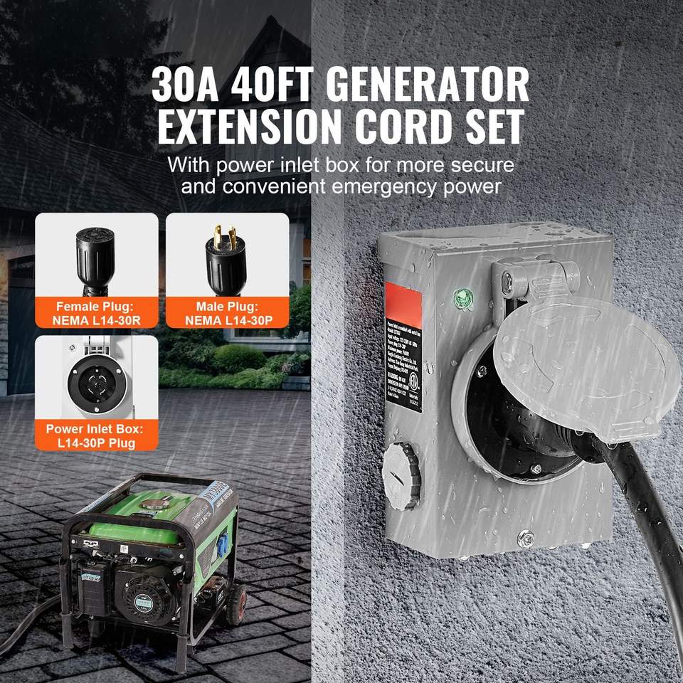 Kit Scatola di Ingresso Alimentazione Generatore 30 Amp con Cavo di Prolunga Elettrica RV da 40 Piedi NEMA L14-30P/L14-30R STW 10 AWG
