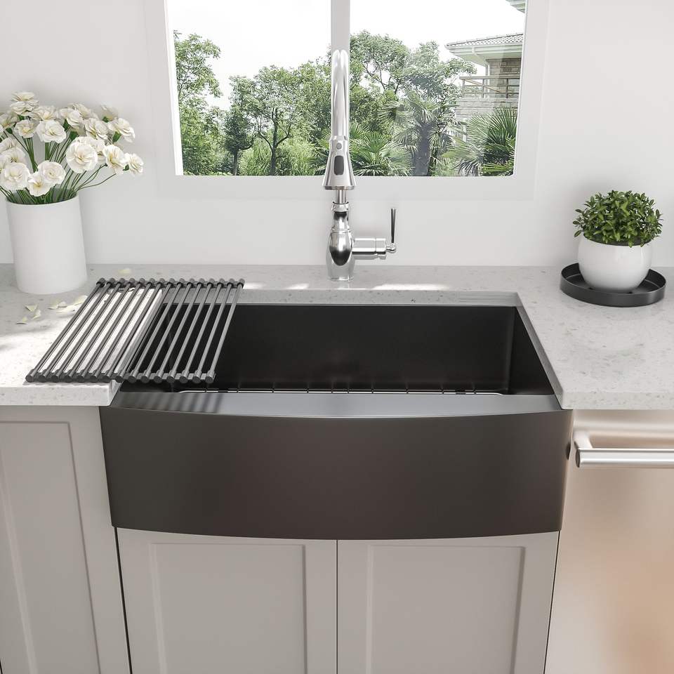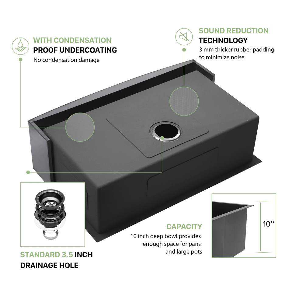 30 \ "lavello cucina in acciaio inox da fattoria nero calibro 16 10 \" profondo ciotola singola 30x21x10 "grembiule anteriore canna da fucile nero 10 pollici