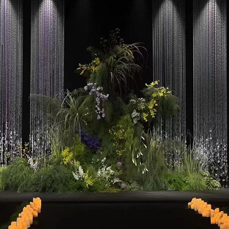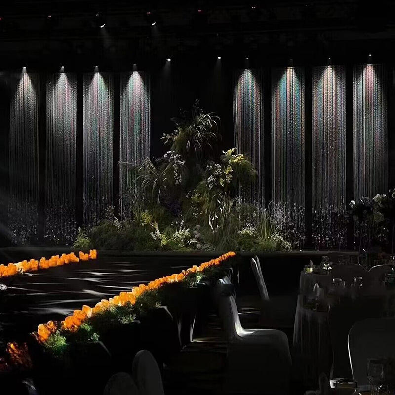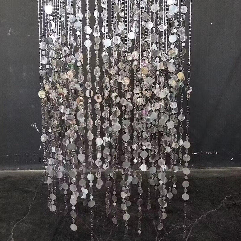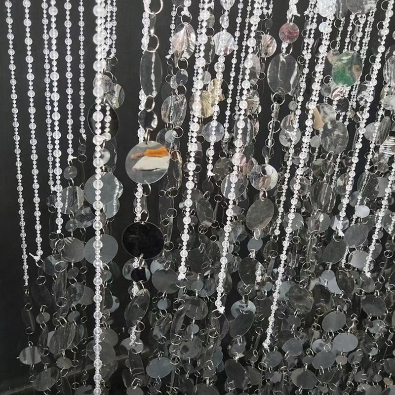 Catena di Perline in Ferro con Paillettes Acriliche Argento per Decorazione Palco Matrimoniale, Larghezza 30 CM, per Sale Banchetti e Hotel