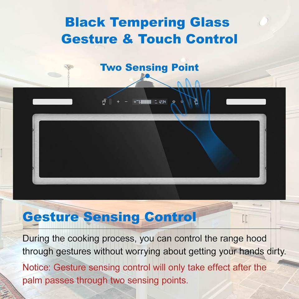 Cappa aspirante da incasso in vetro nero da 30 pollici, 800 CFM, con controllo touch a gesto e filtri a rete, inserto R-Insert