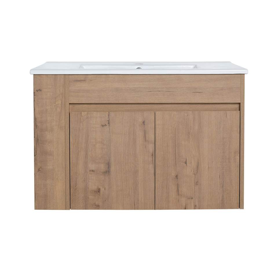 Mobile da Bagno da 30 Pollici con Lavabo in Ceramica e Ripiano Aperto Regolabile