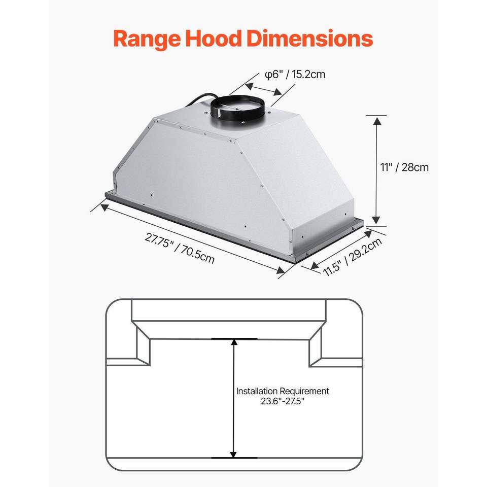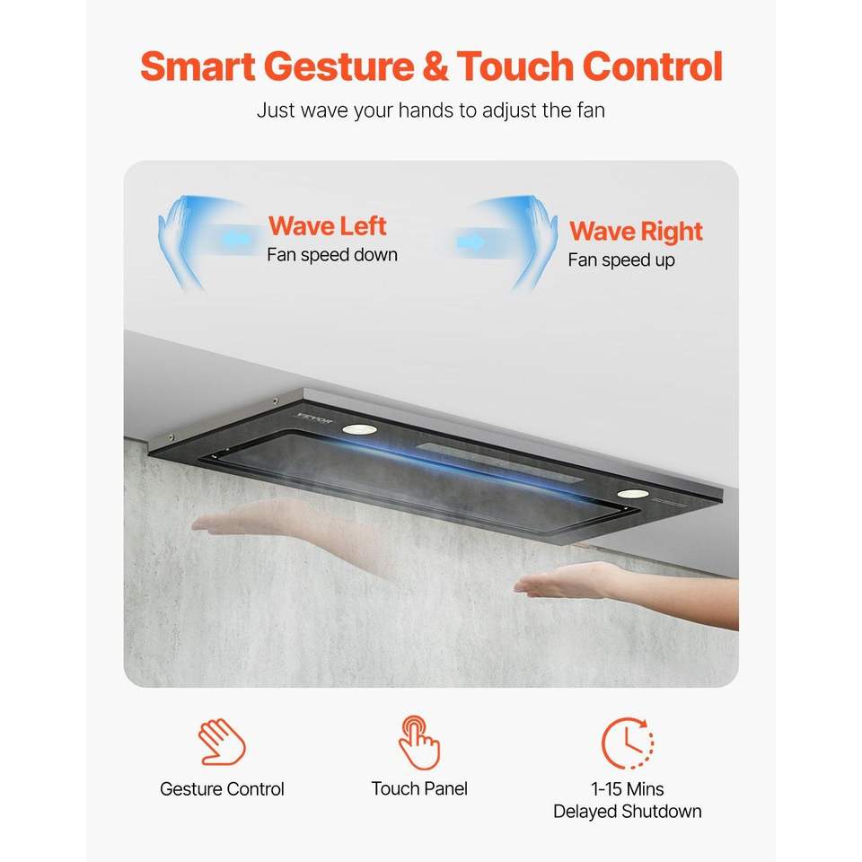 Cappa da cucina a incasso da 30 pollici 800CFM in acciaio inossidabile con luci LED e controllo touch gestuale