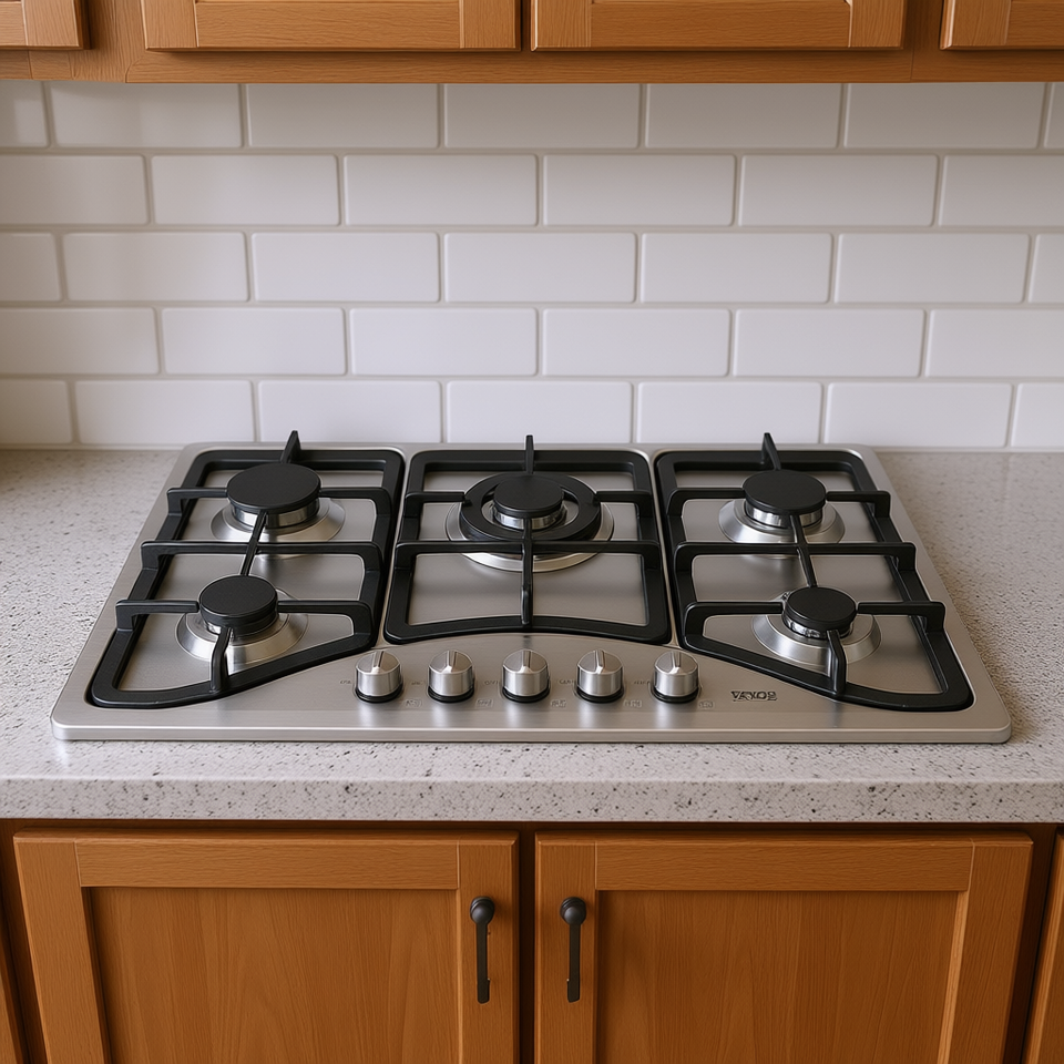 Piano Cottura a Gas Incasso in Acciaio Inox da 30 Pollici, 5 Bruciatori, Doppio Combustibile GPL/Gas Naturale, Protezione Termocoppia