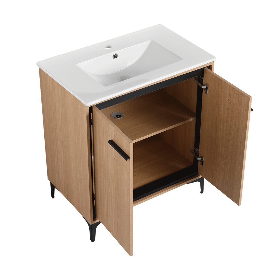 Mobile bagno da 30 pollici in legno ingegnerizzato con lavabo e armadietto contenitore, include ante