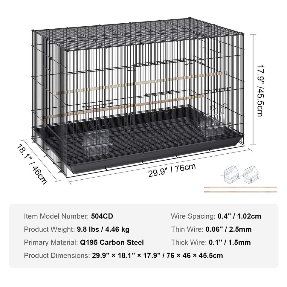Gabbia per Uccelli in Metallo da 30 Pollici per Pappagalli Grandi e Piccoli, Pappagallini, Calopsittici, Agaporni e Canarini di Rollin