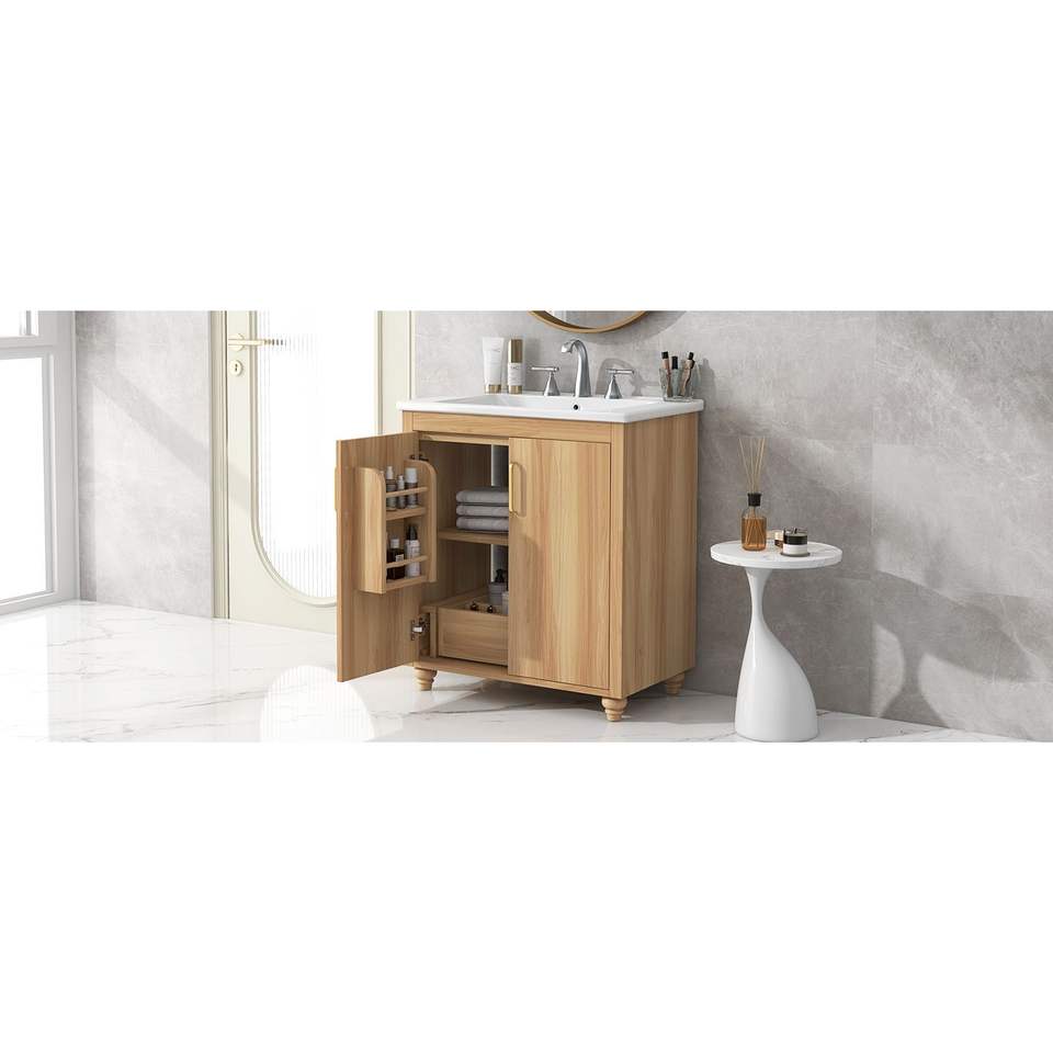 Mobile Bagno Multifunzionale da 30 Pollici con Lavabo Integrato, Mobile in MDF Naturale con Ante e Cassetto