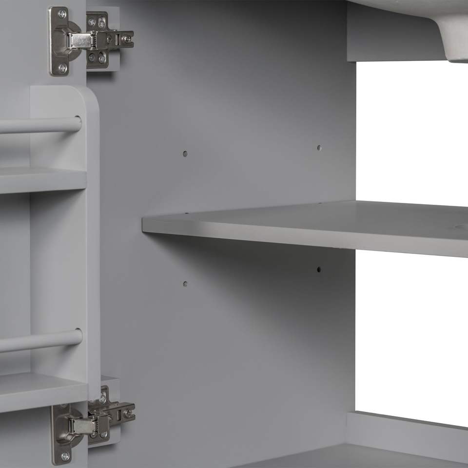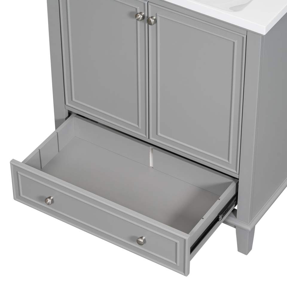 Mobile Bagno Grigio Multifunzionale da 30 Pollici con Struttura Solida in MDF, Lavabo Integrato, Ante e Cassetto