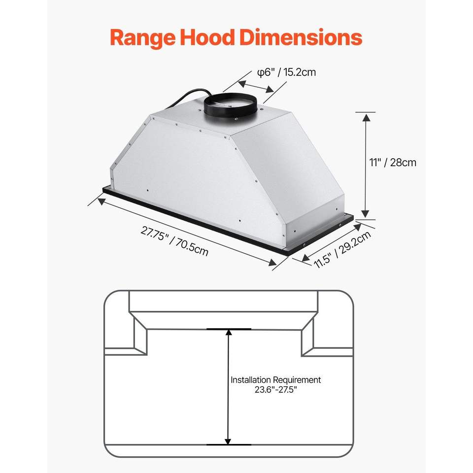 Cappa aspirante da incasso in acciaio da 30 pollici 800 CFM con luci LED e controlli touch gestuali, inserto per cappa da cucina da 30 pollici