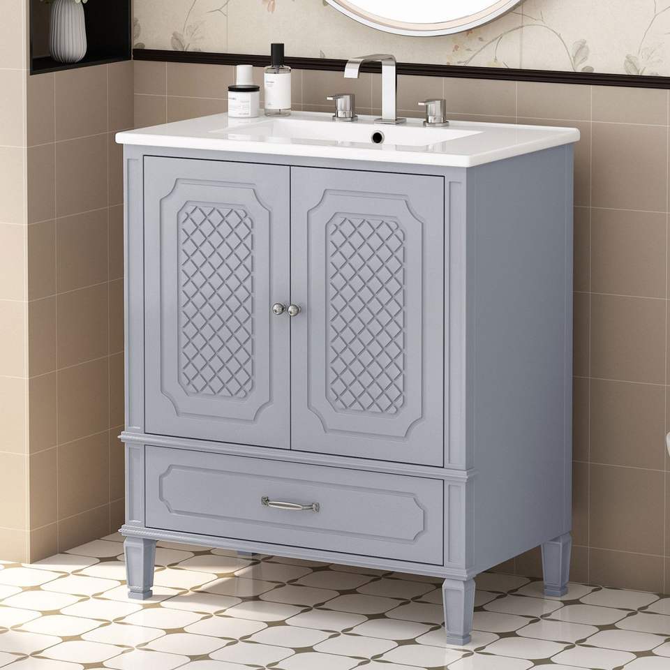 Lavandino da bagno in stile Vintage da 30 pollici con lavello multifunzionale e porta a chiusura morbida in grigio