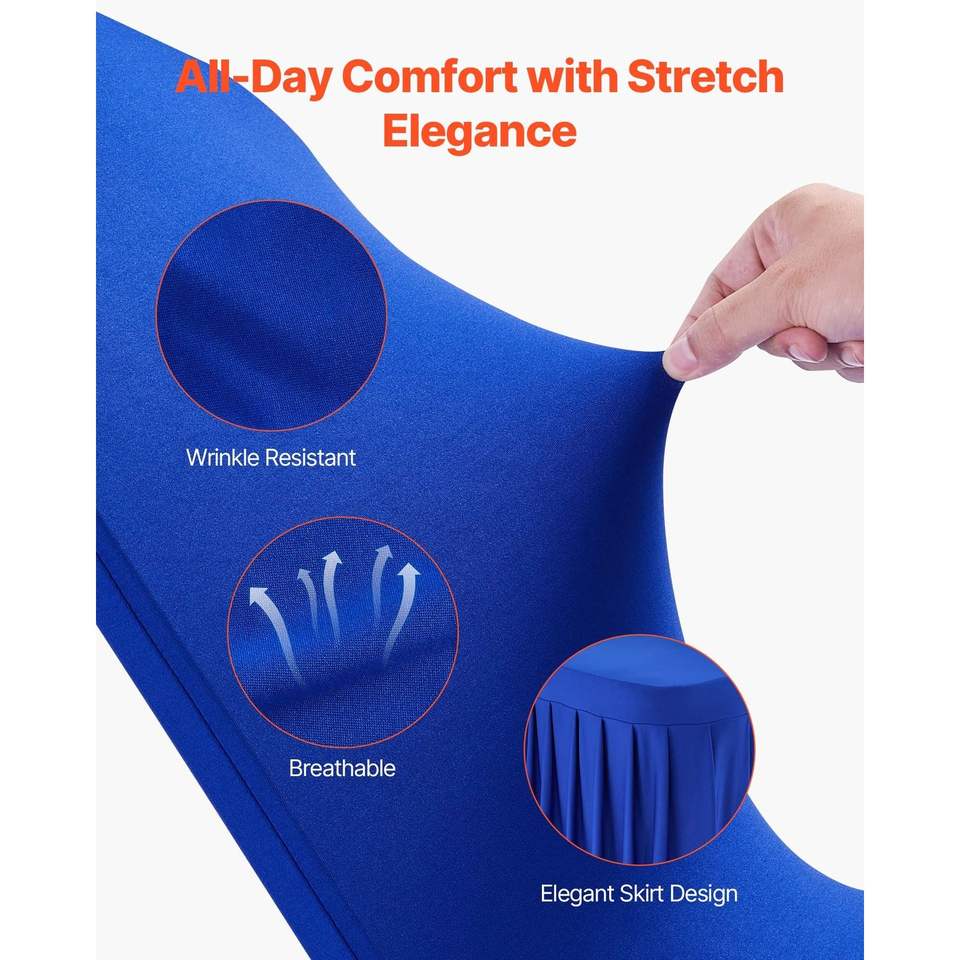 30 Pezzi Coprisedia Elasticizzati Blu in Poliestere e Spandex, Coperture per Sedie con Fronte Piatto per Matrimoni, Feste, Cene o Banchetti