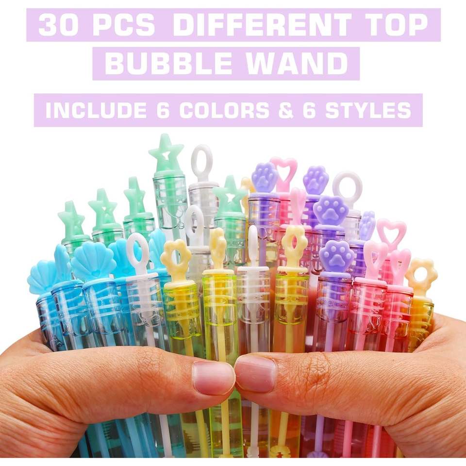 Set di Mini bacchette a bolle da 30 pezzi 6 stili e 6 colori fantastici giocattoli per esterni e interni per bambini bomboniere per feste