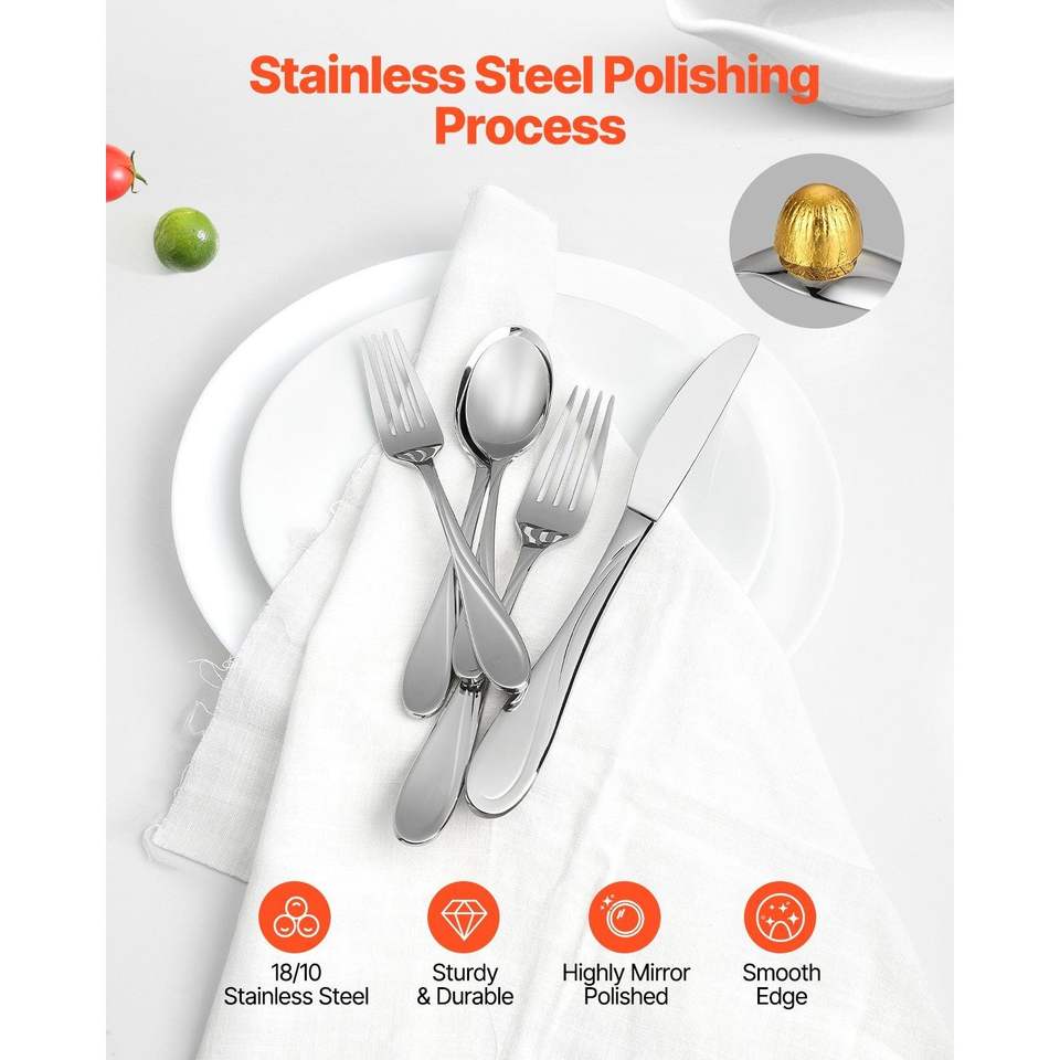 Set di posate da 30 pezzi in acciaio inossidabile per alimenti, utensili con finitura a specchio, lavabili in lavastoviglie, stoviglie per la tavola