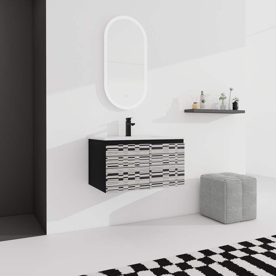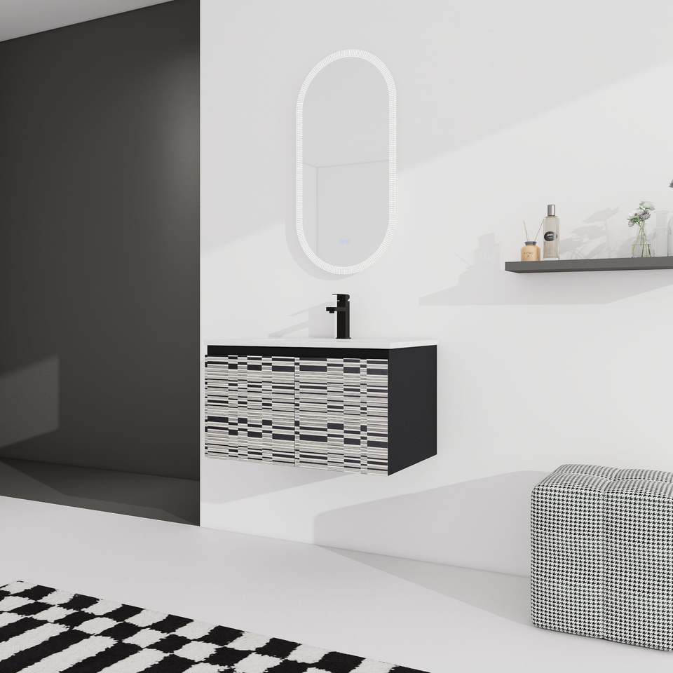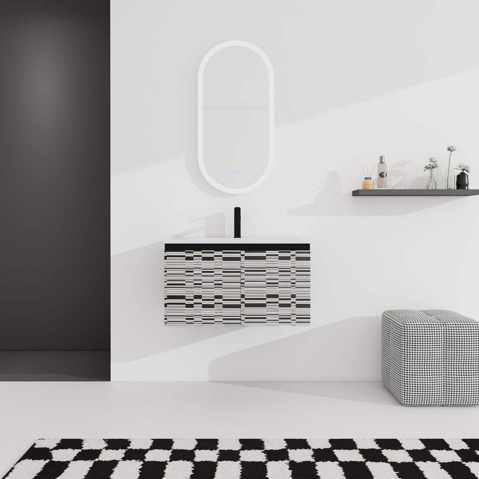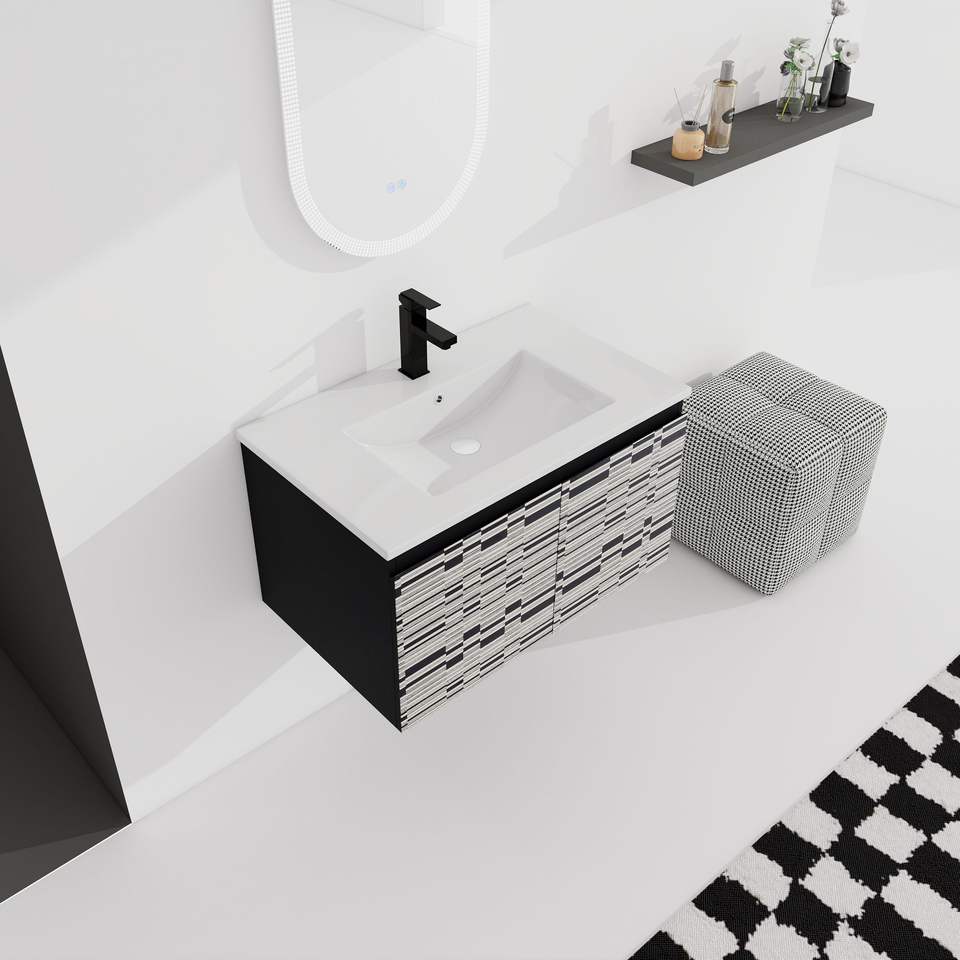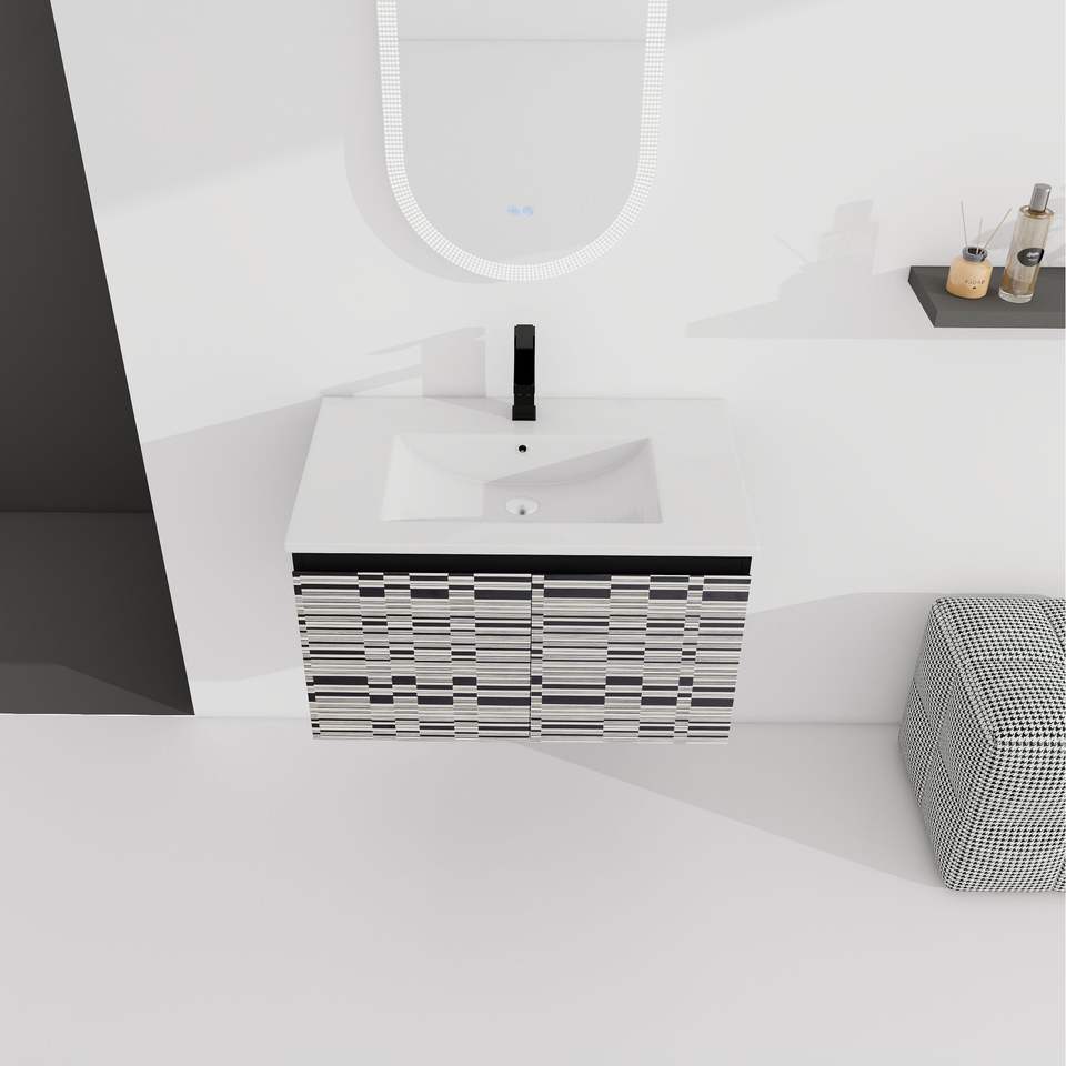 Mobile bagno sospeso da 30 pollici con lavabo in ceramica e anta con chiusura ammortizzata, kit di montaggio (KD)