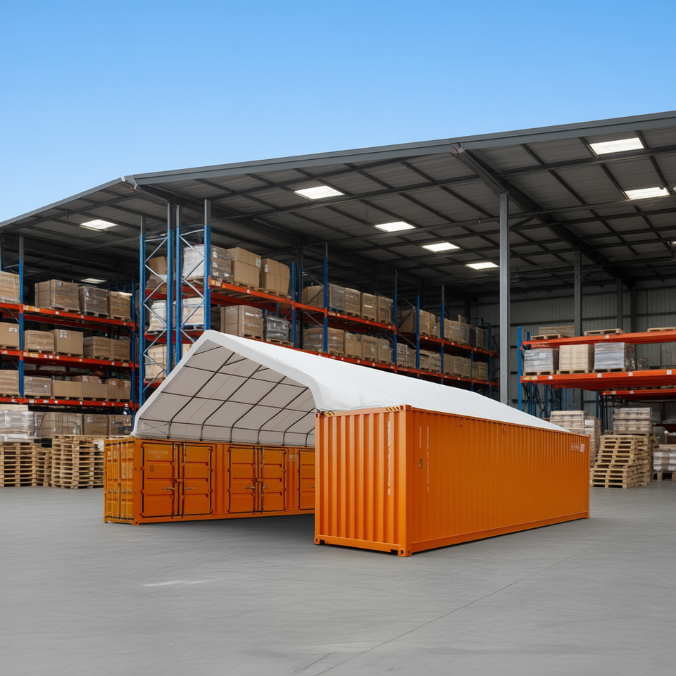 Container Serie Pro con Tetto a Punta 30' X 40' in Tessuto PE Ignifugo e Protetto dai Raggi UV per Stoccaggio Attrezzature