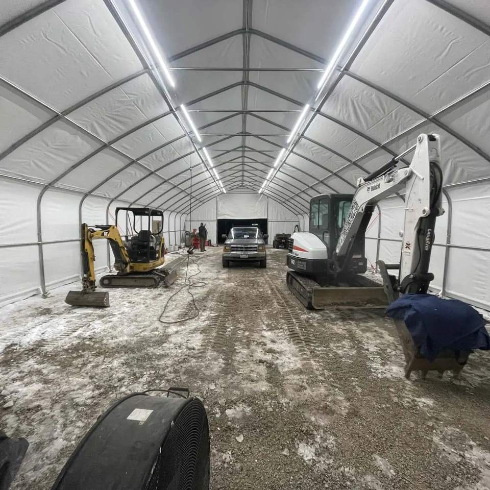30' X 70' TMG-ST3070V Straight Wall Peak Ceiling Storage Shelter with Heavy Duty 17 oz PVC Cover and Drive Doors