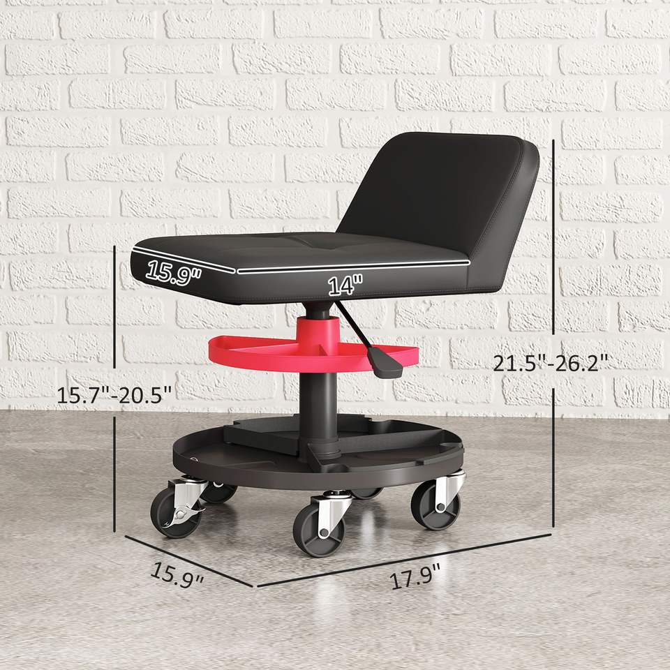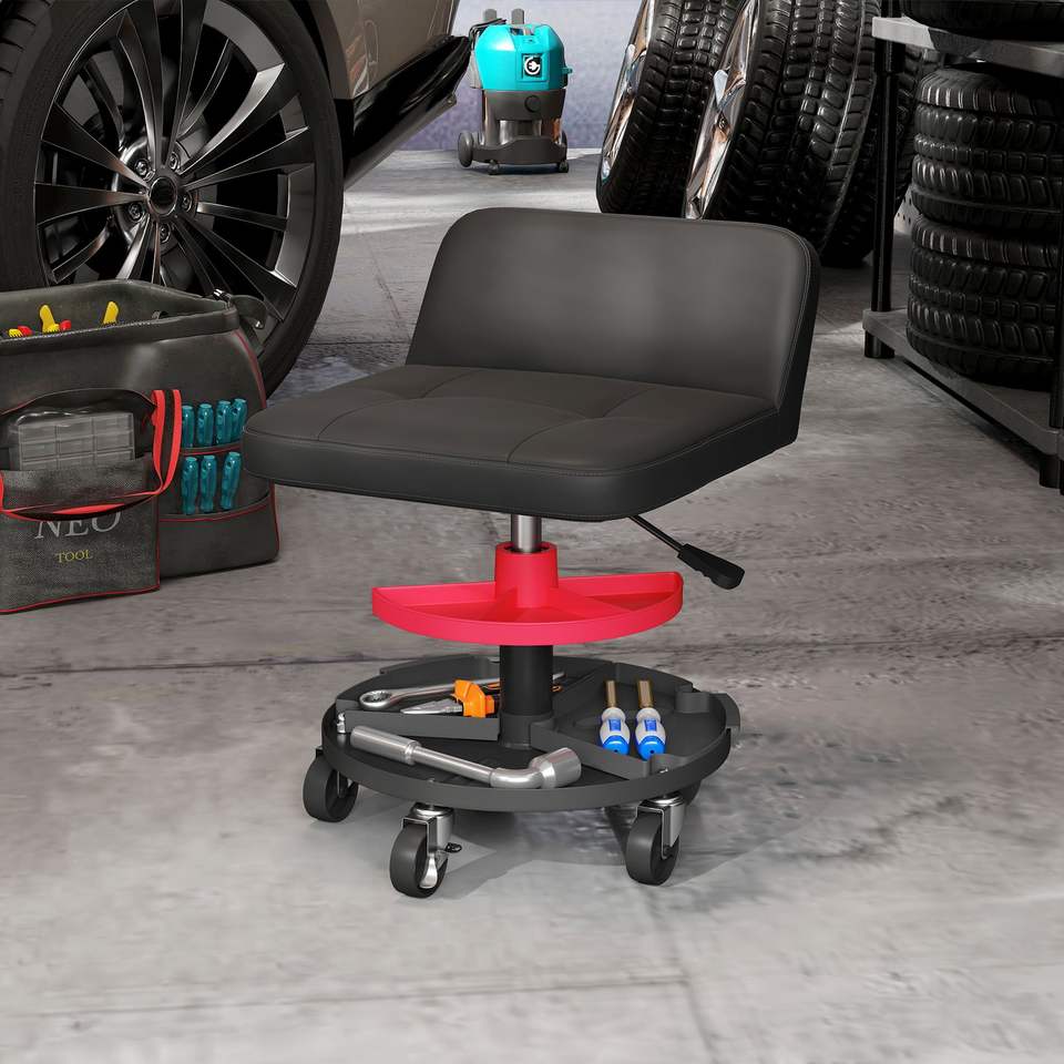 Sgabello da Garage con Ruote Girevoli a 360 Gradi, Capacità 300 LBS, Vassoio Porta Attrezzi, Altezza Regolabile, Arredamento e Decorazione per la Casa