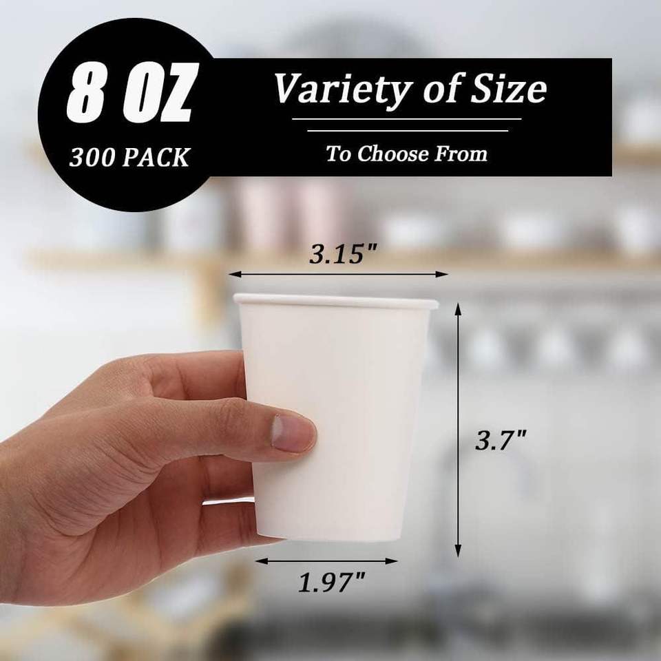 Confezione da 300 Bicchieri di Carta Bianchi da 8 oz per Bevande Calde/Fredde, Acqua, Succhi