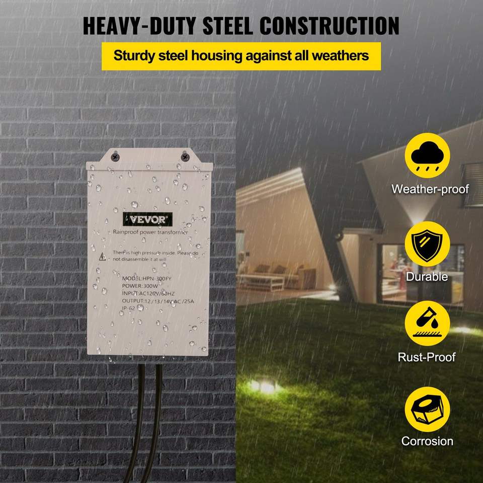 300-Watt Outdoor Landscape Lighting Transformer Pool/Spa Path Light LED Compatible Multi-Tap 12/13/14V AC Weatherproof