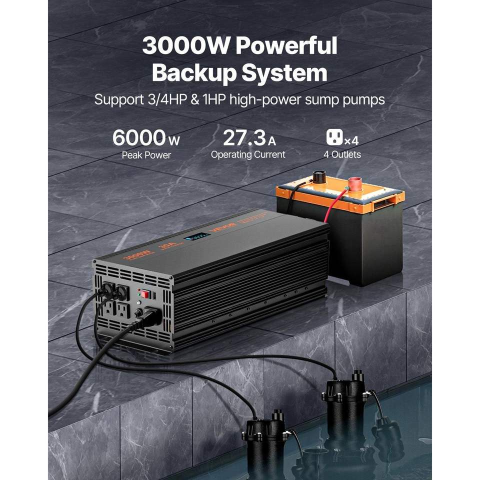 Sistema di Pompaggio Automatico da 3000W con Batteria di Backup e Inverter Solare a Onda Sinusoidale Pura per Funzionamento Continuo
