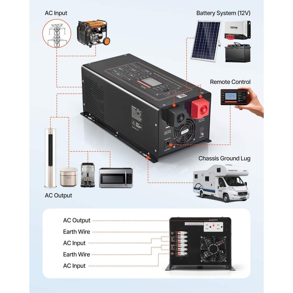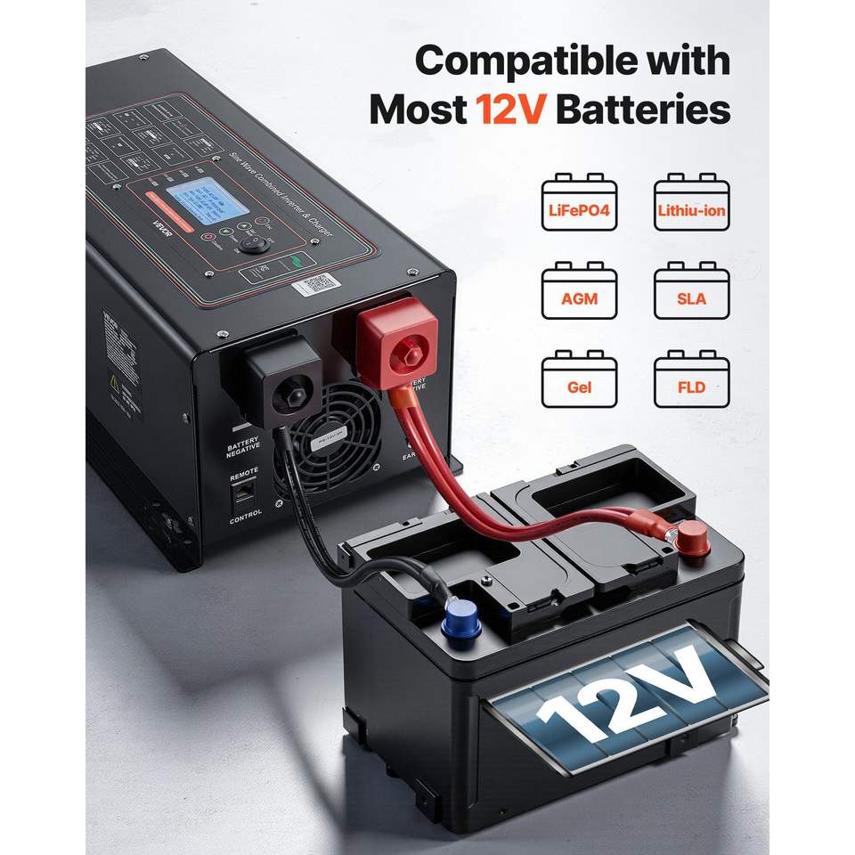 Inverter a Onda Sinusoidale Pura 3000W con Caricabatterie DC 12V AC 120V, Display LCD, Telecomando, Bassa Frequenza per Sistema Elettrico RV