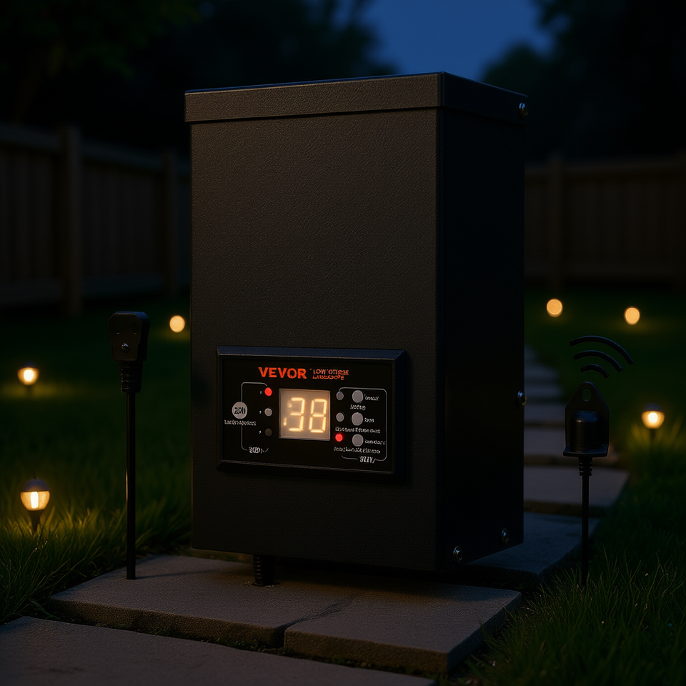 Trasformatore per Illuminazione Esterna 300W 120V AC a 12V/14V AC, Faretto Impermeabile con Timer e Sensore Fotocellula