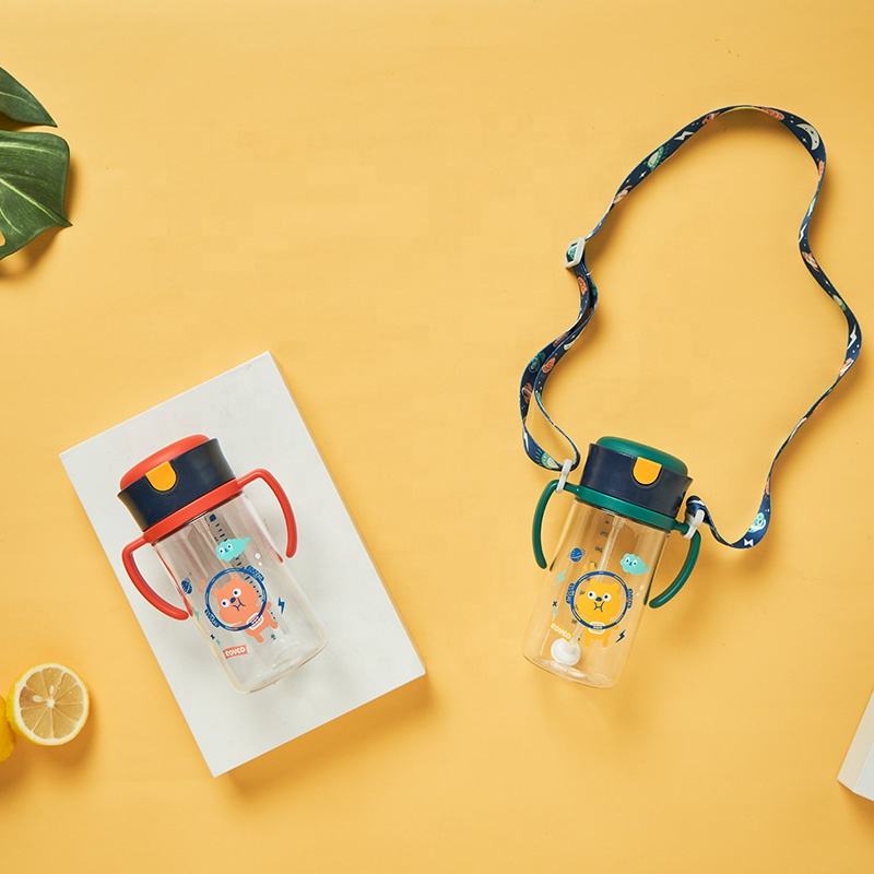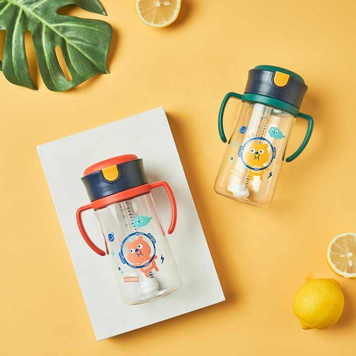 300ml Tritan Dual Purpose Straw Water Cup with Curved Handle,gravity Ball Design and Carton Drawings