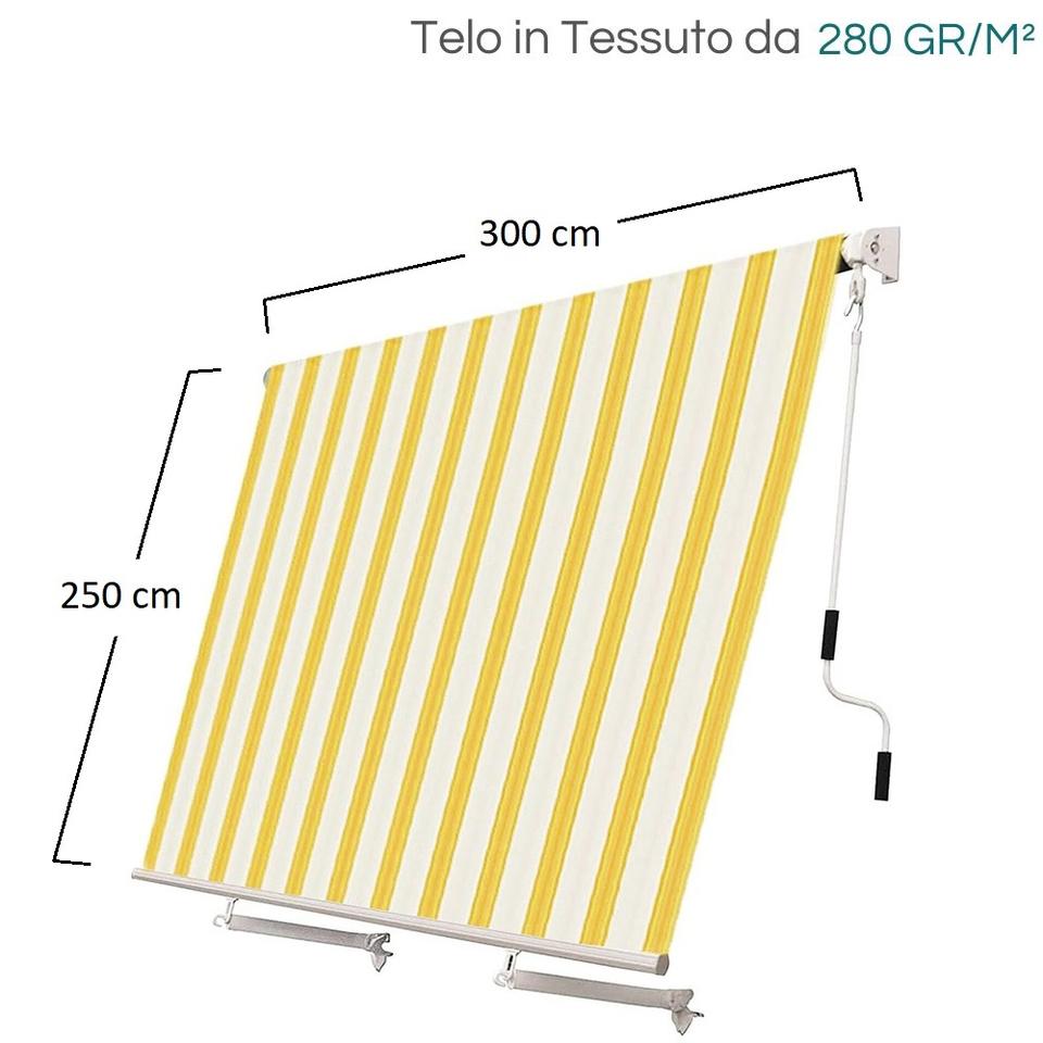 300x250 cm Drop Awning with Roll-Up Arm and Stopper Arms for Balcony and Terrace-Available in Various Colors