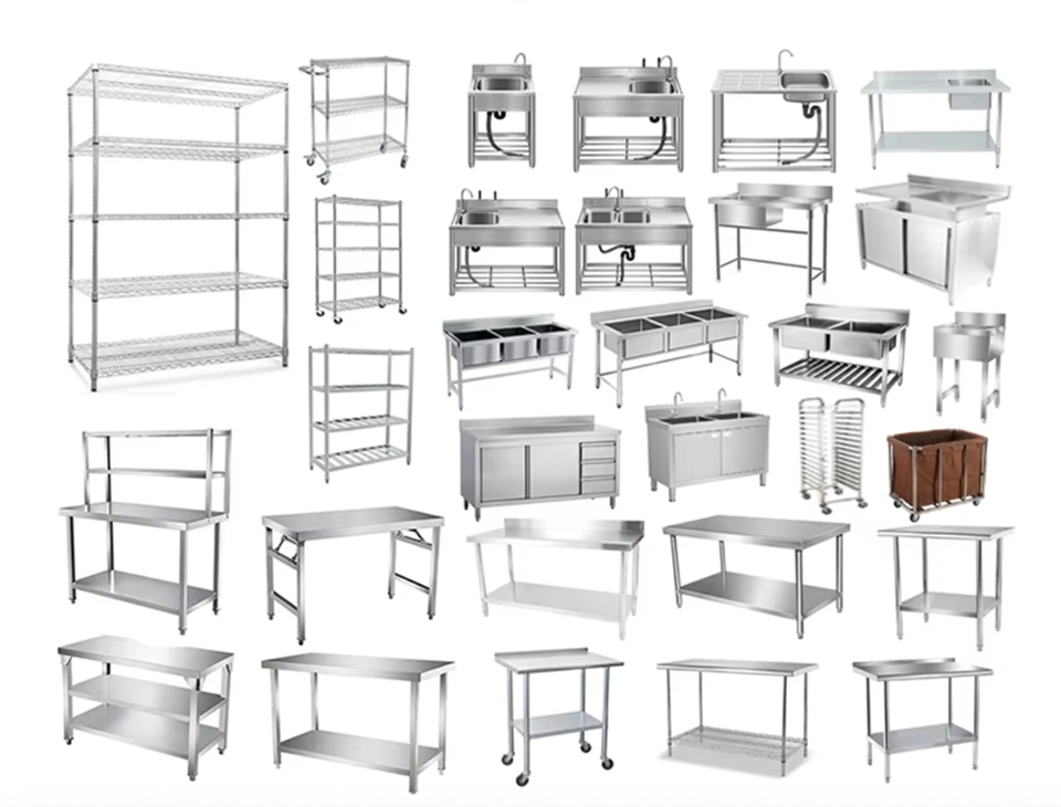 Banco da Lavoro con Cassetti e Piedini Regolabili in Acciaio Inox Spazzolato 304/201, Tavolo da Lavoro per Cucina Commerciale e Negozio