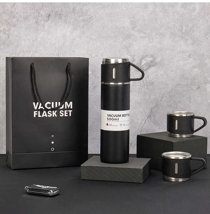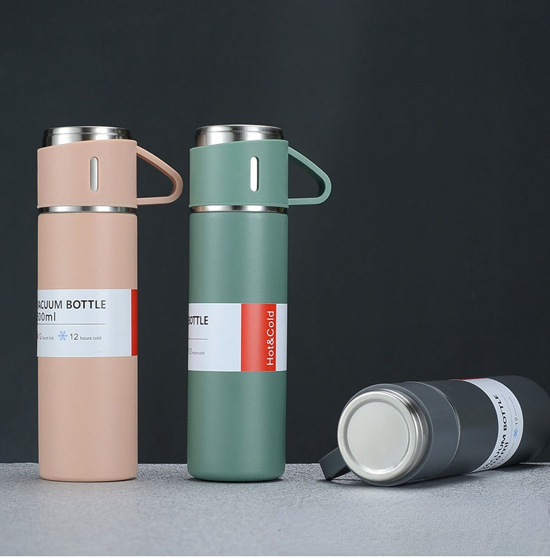 Set di 3 Thermos in Acciaio Inox 304 da 500ml con Isolamento Sottovuoto e 2 Coperchi, Antigoccia, Portatile, Regalo Aziendale