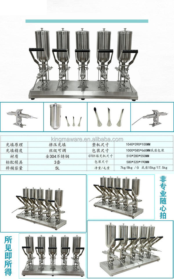 304 in acciaio inox 5L * 5 manuale Churro Filler ciambella Churros macchina di riempimento per la vendita