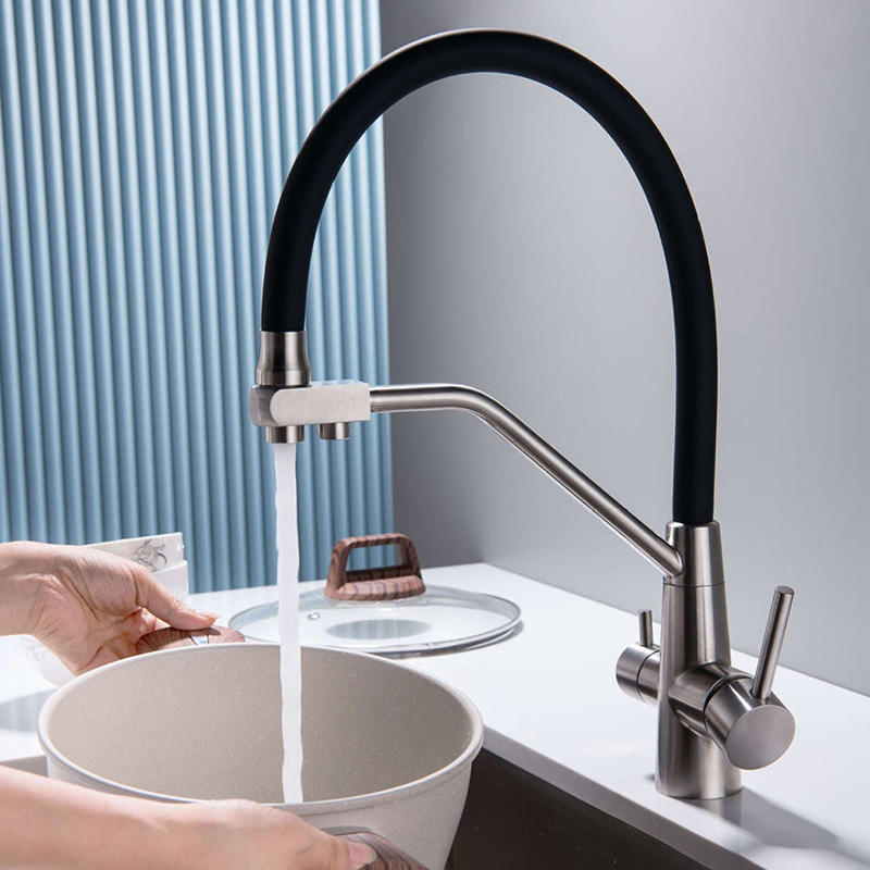 304 in acciaio inox classico Design moderno rubinetto universale lavello rubinetto di depurazione dell'acqua calda/fredda per il lavaggio delle verdure