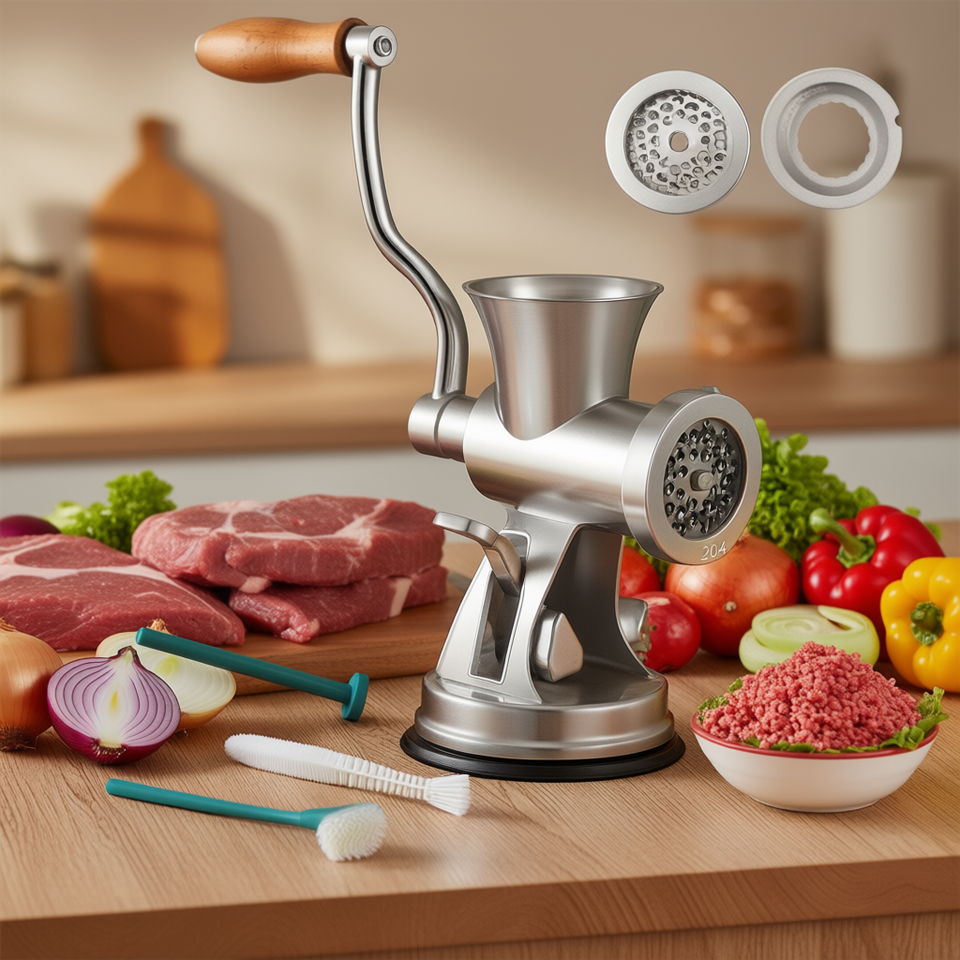 Manual Meat Grinder 304 Stainless Steel Hand Crank Household Sausage Maker 1.0 Kg Grinding Capacity