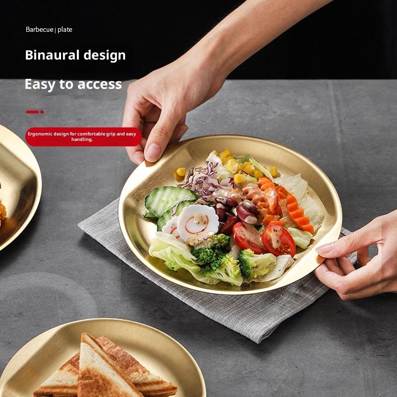Piatto per Barbecue Moderno in Acciaio Inox 304 Stile Coreano, Piatto Dorato Poco Profondo, Piatto per Torte a Fondo Piatto, per Feste