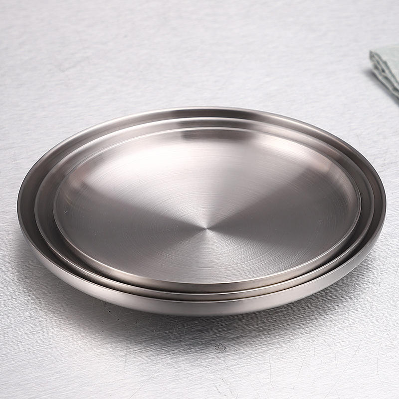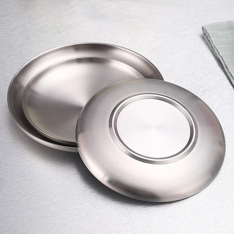 Piatto per Barbecue Moderno in Acciaio Inox 304, Piatto Dorato Poco Profondo, Piatto per Torte a Fondo Piatto