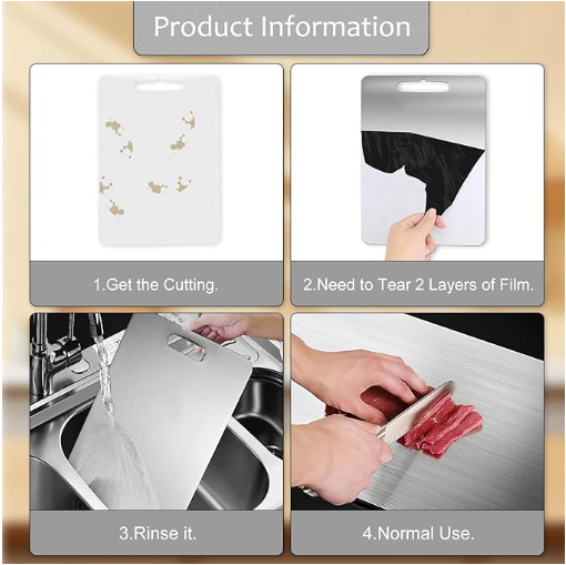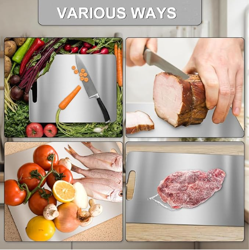 304 tagliere da cucina antiaderente in acciaio inossidabile, igienico e resistente, a doppia faccia per carne, verdure, frutta lavabile in lavastoviglie