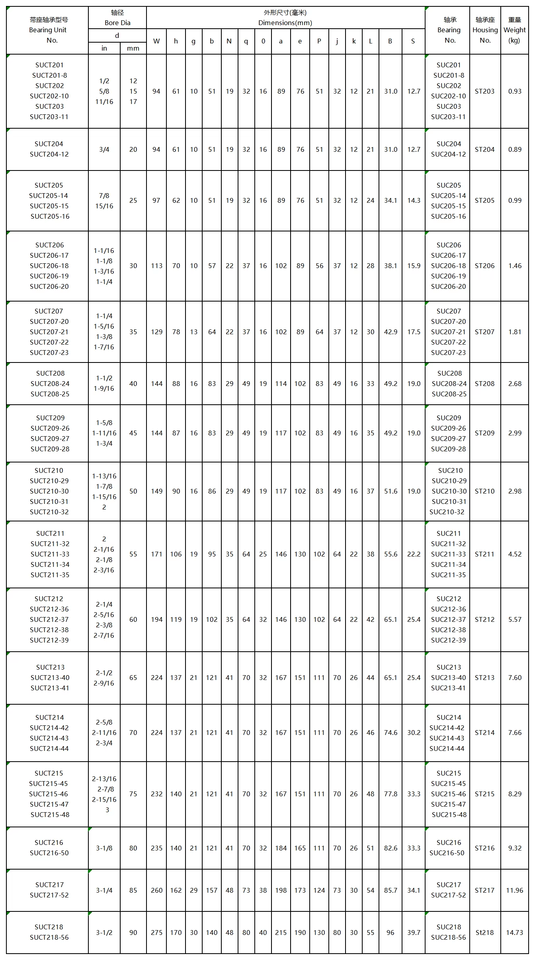 Cuscinetto a Sfera Esterno in Acciaio Inox 304 con Sedile, Precisione P5, Lubrificato a Grasso, Modelli SUCT205 206 207 208 T209