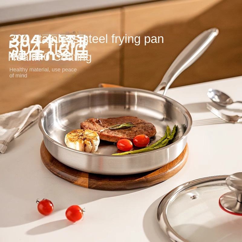 304 Stainless Steel Uncoated Thickened Three-Layer Steel Induction Gas Universal Frying Pan for Home Cooking European Style