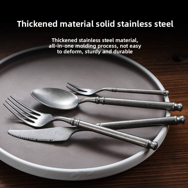 Set di posate vintage in acciaio inossidabile 304 (cucchiaio, coltello e forchette) per casa e ristorante