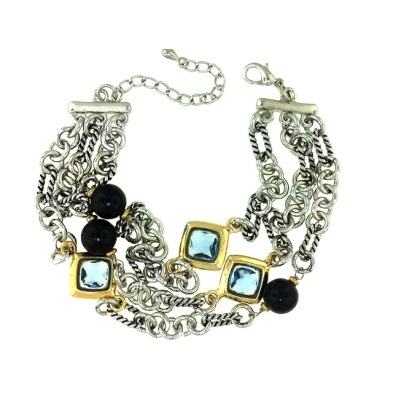 Baguette pietra con scatola catena 925 argento Shahmeran braccialetto