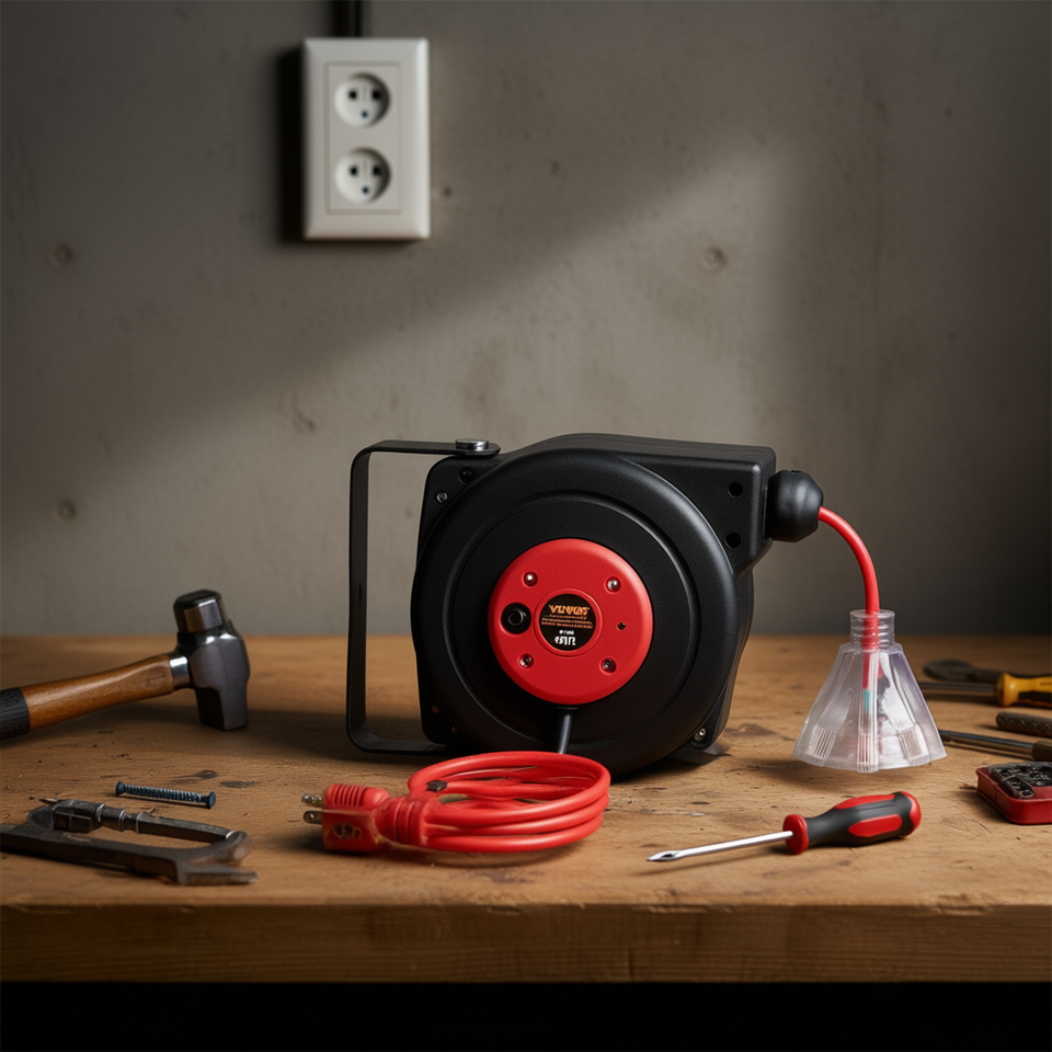 Retractable Extension Cord Reel 30 Ft 16 Awg 3C Sjtow Power Cord For Convenient Use