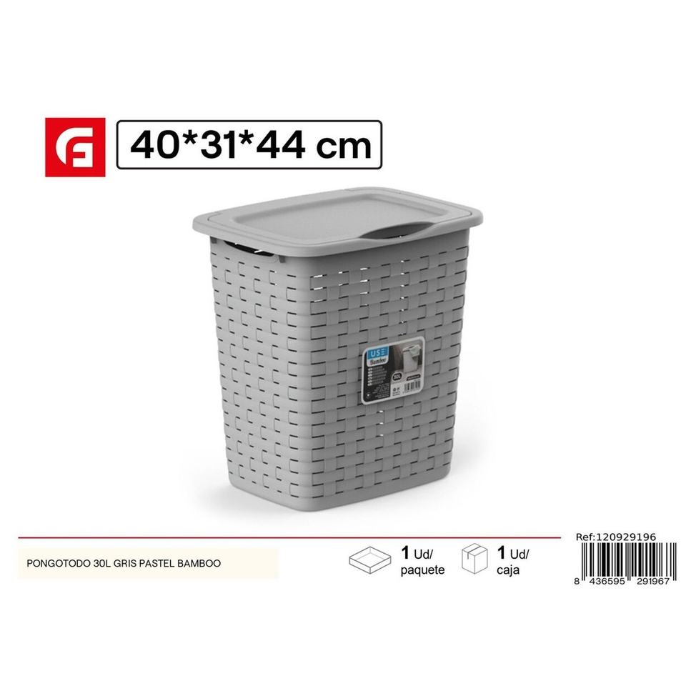 30L Pastel Grey Bamboo Storage Bin - Storage